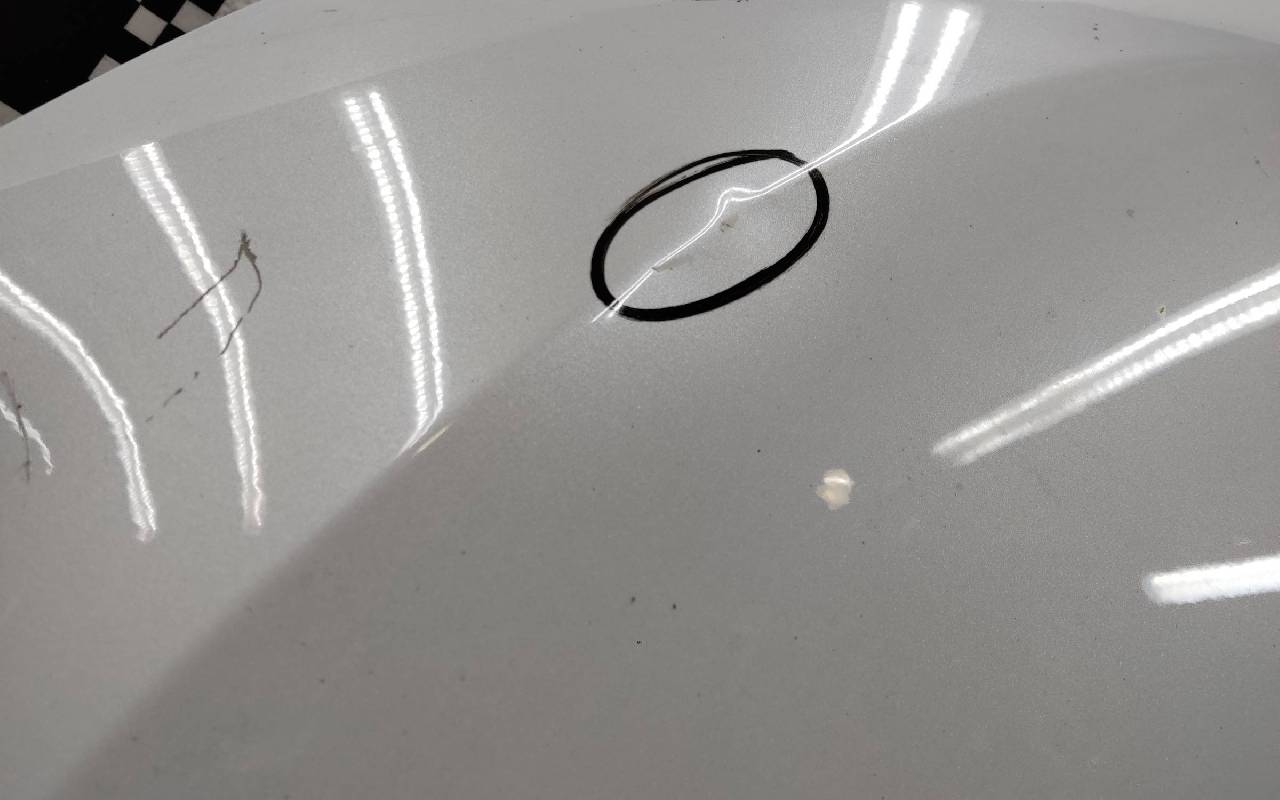 Состояние детали хорошее. Белого цвета, скол ЛКП. Вмятинки. Потребуется незначительный ремонт