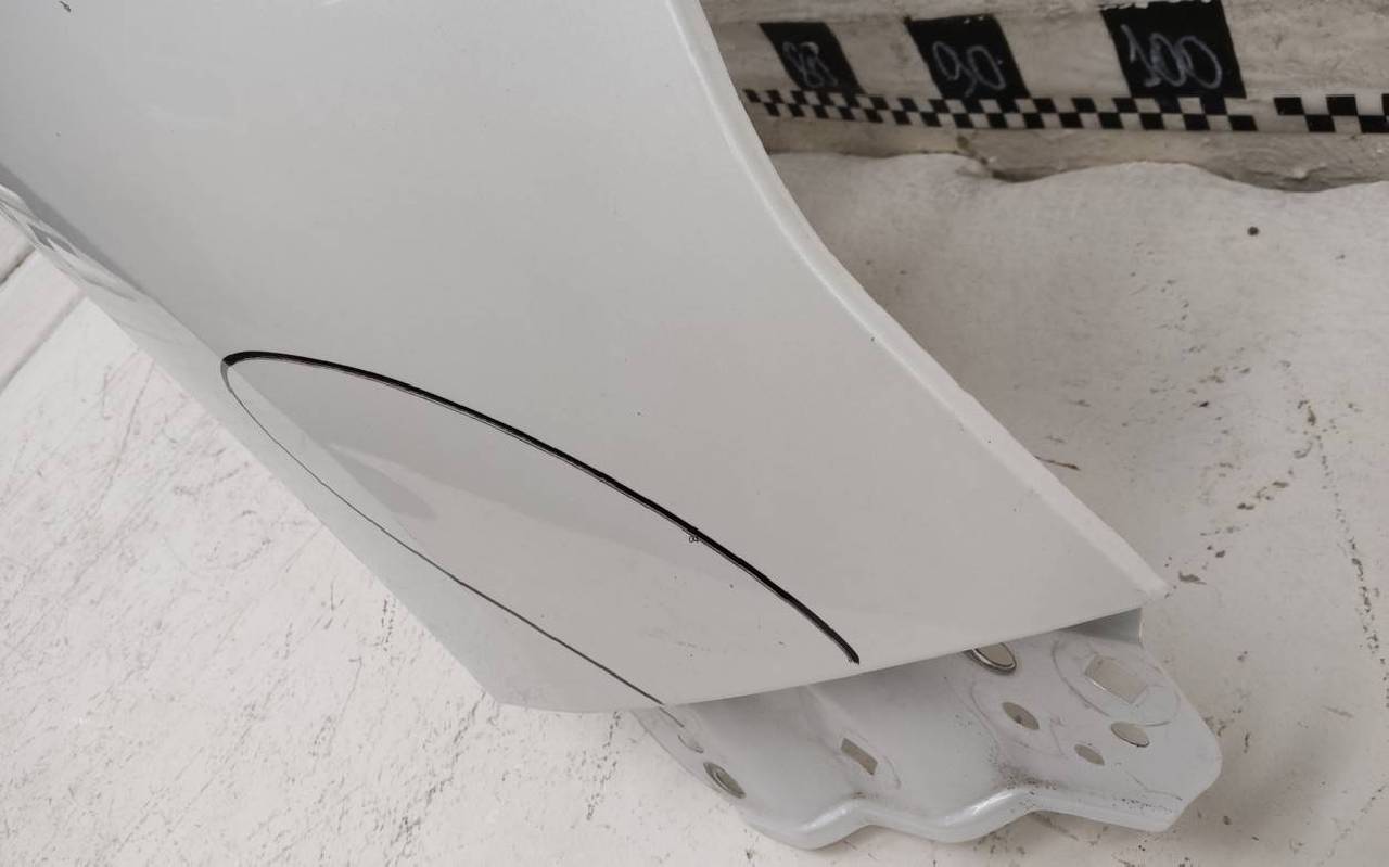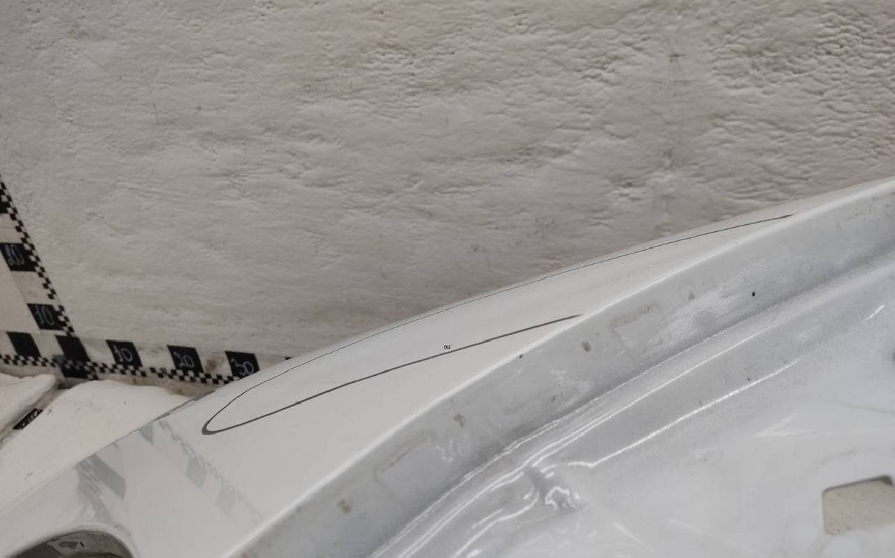 Состояние детали хорошее. Белого цвета, скол ЛКП. Небольшая вмятина в передней части. Потребуется незначительный ремонт