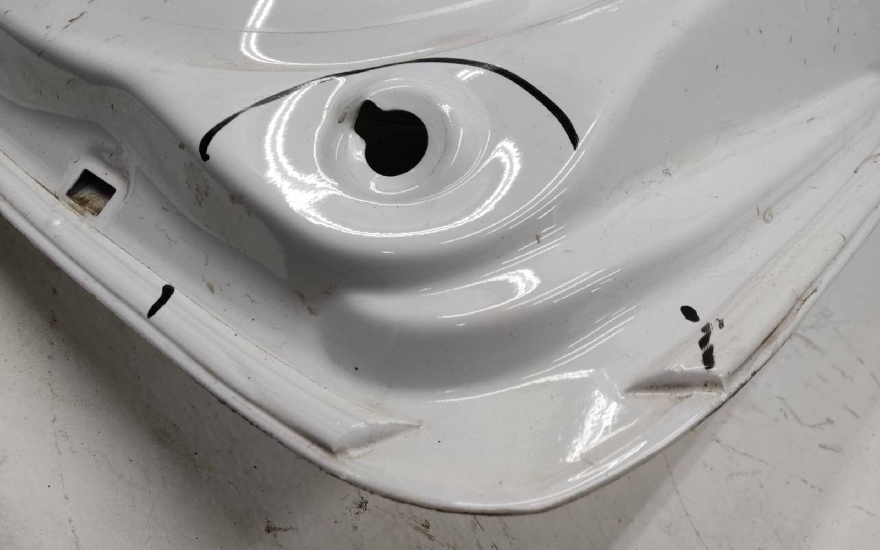 Состояние детали удовлетворительное. Белого цвета, скол ЛКП. Небольшие вмятины, дефект по шву. Потребуется ремонт