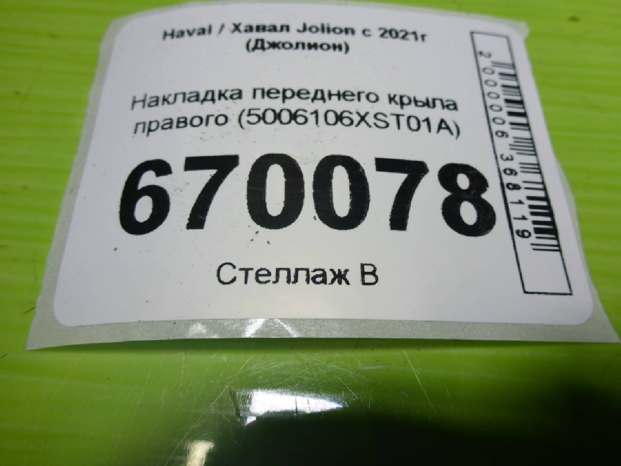 Деталь: Haval Jolion - Накладка переднего крыла правого (5006106XST01A)