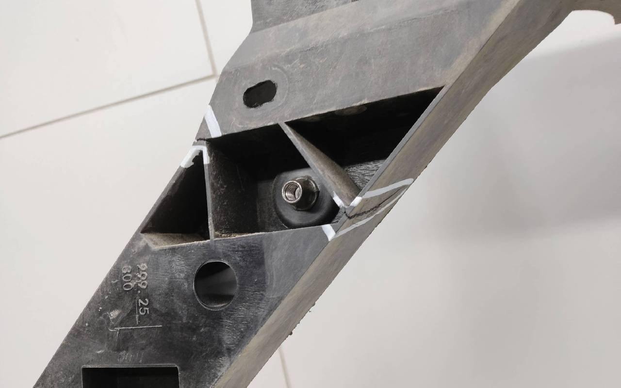 Состояние детали хорошее. Небольшие трещины. Крепления целые. Потребуется незначительный ремонт