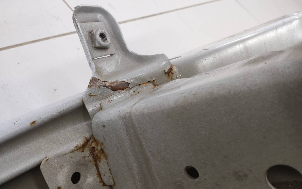 Состояние детали хорошее. Белого цвета, скол ЛКП, следы эксплуатации. Погнута нога кронштейна. Потребуется незначительный ремонт
