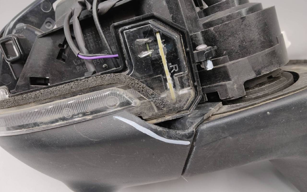 Состояние детали очень плохое. Без зеркального элемента и крышки. Трещина по кромке стекла повторителя. Разбита рамка, отсутствует фрагмент нижней части корпуса. Кронштейн и контакты целые. На запчасти, без гарантии на возврат
