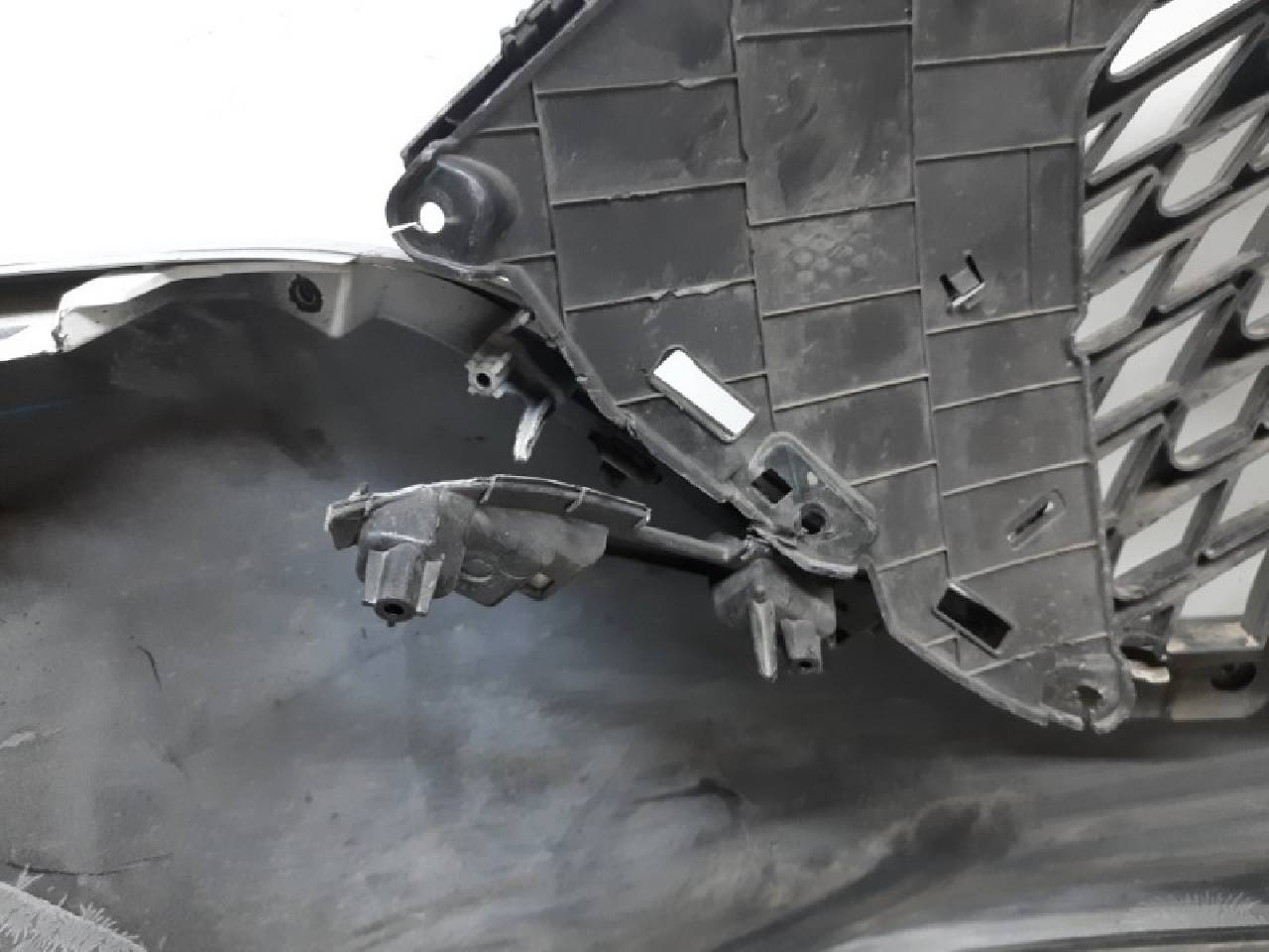 Оригинал. С дефектом(трещины на бампере и решетке радиатора, сломаны крепления решетки радиатора).