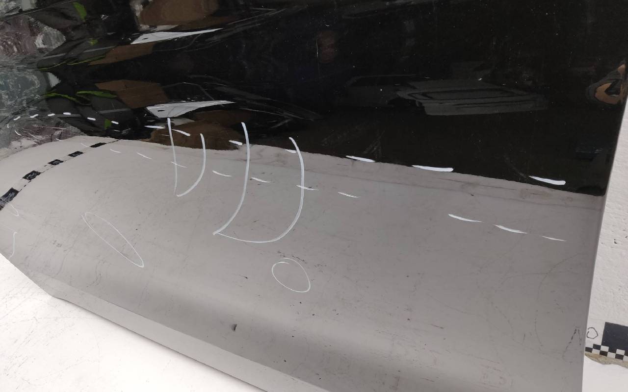 Состояние детали хорошее. Чёрного цвета, скол ЛКП. Небольшие вмятины. Потребуется незначительный ремонт