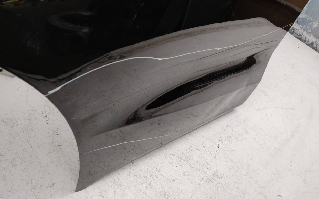 Состояние детали хорошее. Чёрного цвета, скол ЛКП. Вмятина. Потребуется ремонт