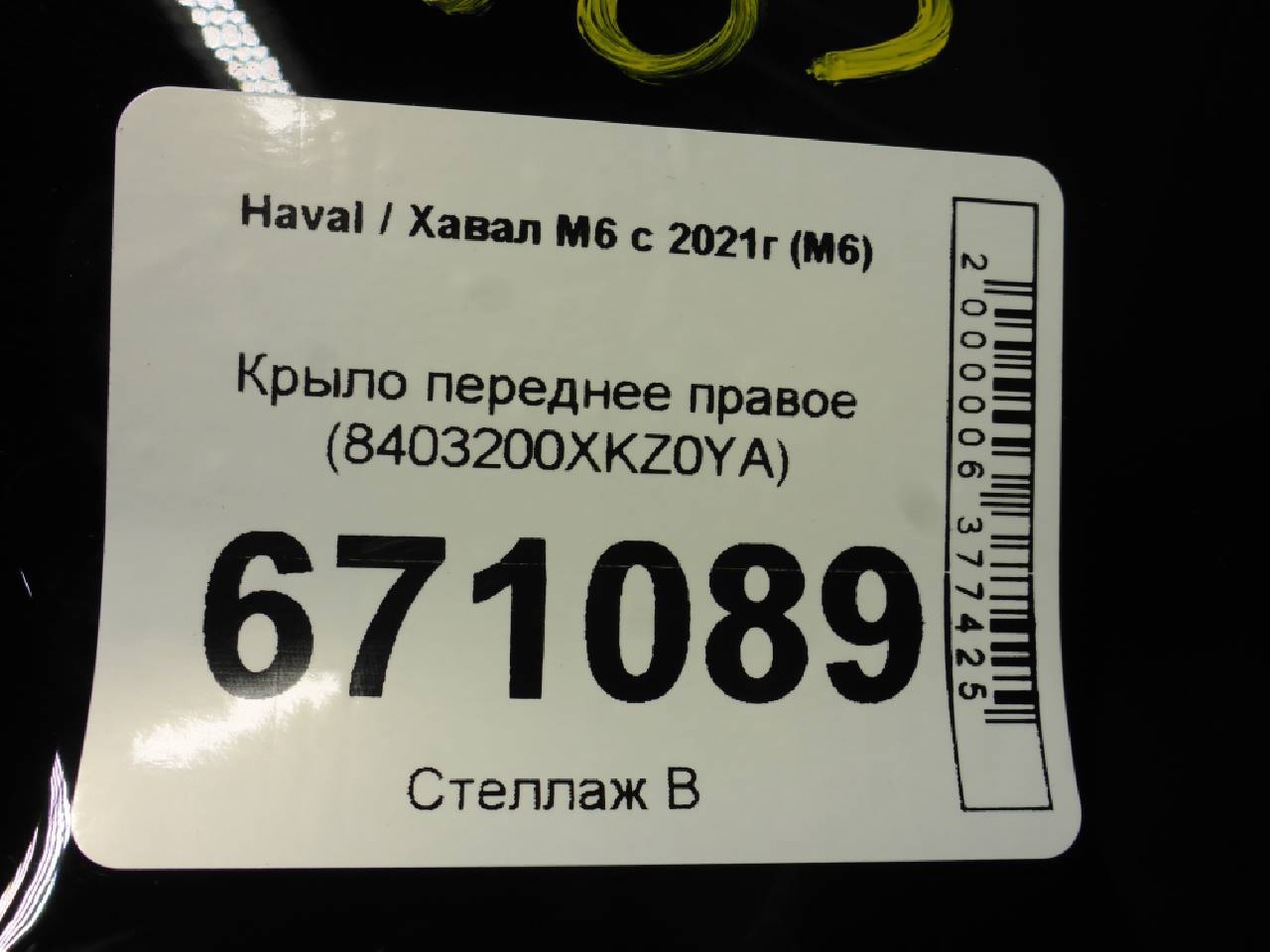 Купить Крыло переднее правое (8403200XKZ0YA) 8403200XKZ0YA для Haval M6 (Хавал М6) RR671089 ✓ с доставкой по Москве и России