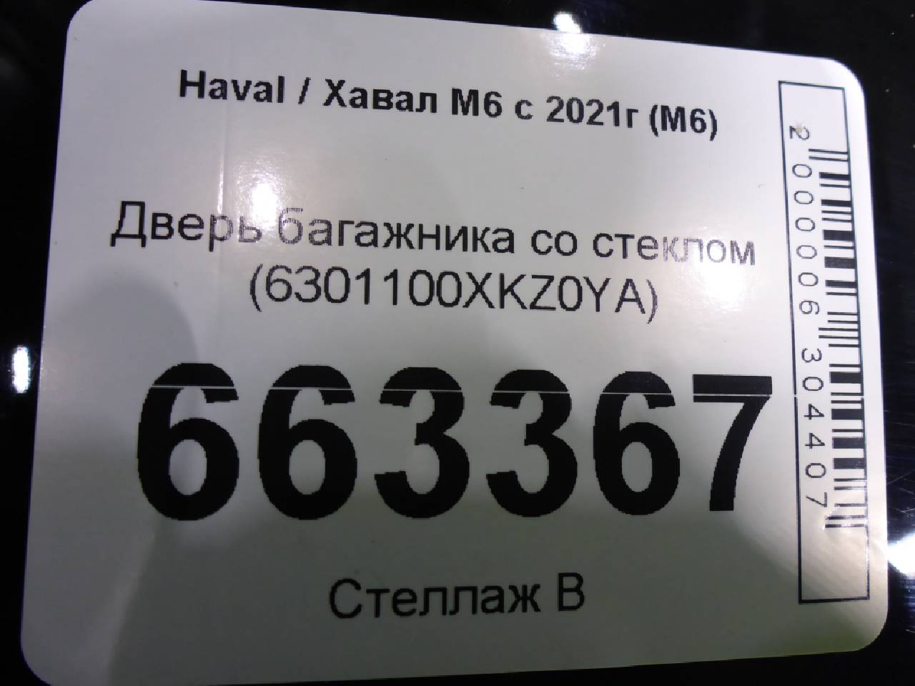Деталь: Haval M6 - Крышка багажника со стеклом (6301100XKZ0YA)