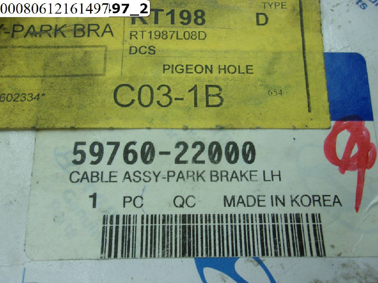 Деталь: Hyundai Accent - Трос стояночного тормоза левый
