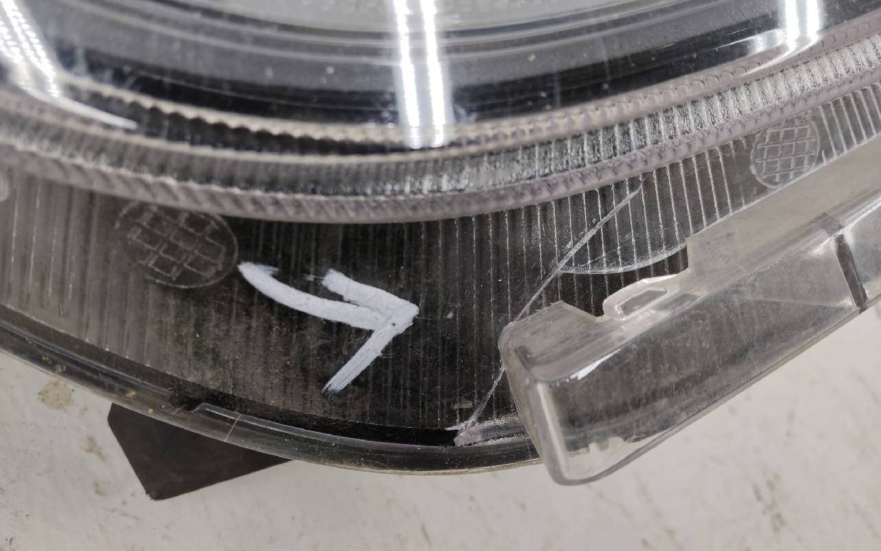 Состояние детали хорошее. Небольшая трещина стекла в нижней части под бампером, дефект направляющей. Отсутствует одно верхнее крепление, сломан съёмный кронштейн. Потребуется ремонт
