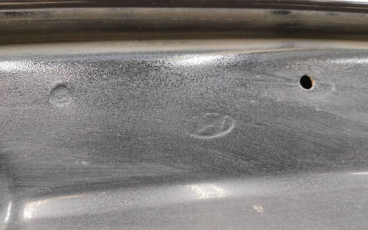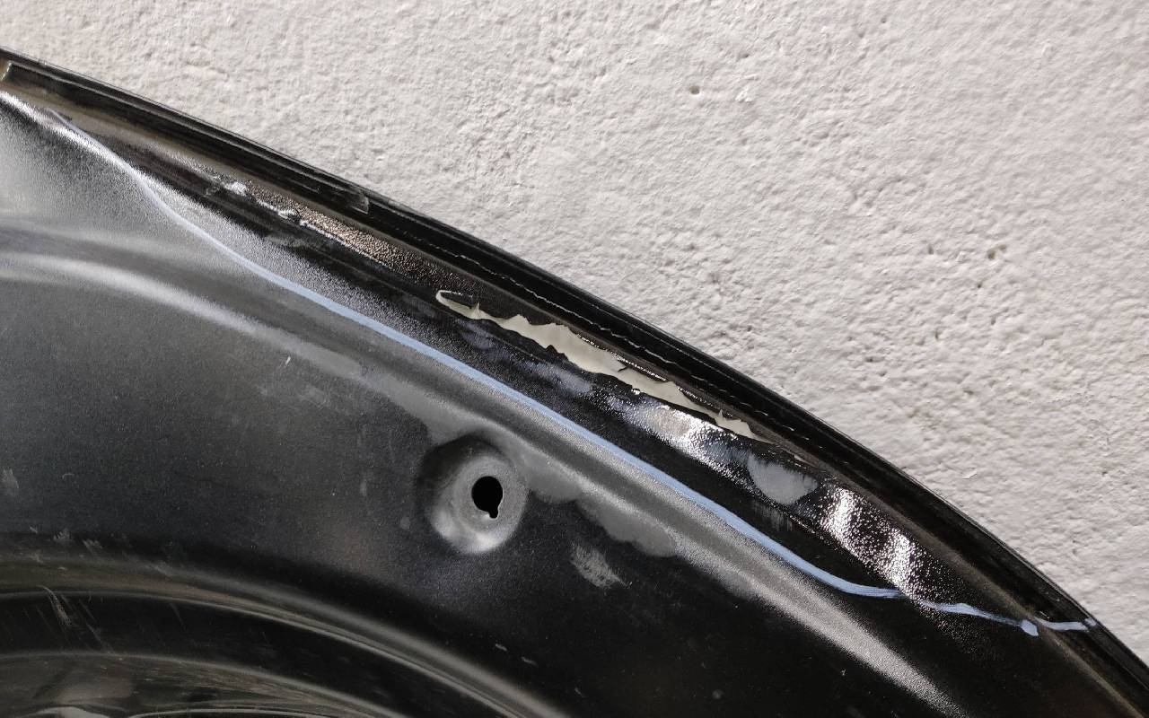Состояние детали хорошее. Чёрного цвета, скол ЛКП. Небольшая вмятина, тычки. Потребуется ремонт