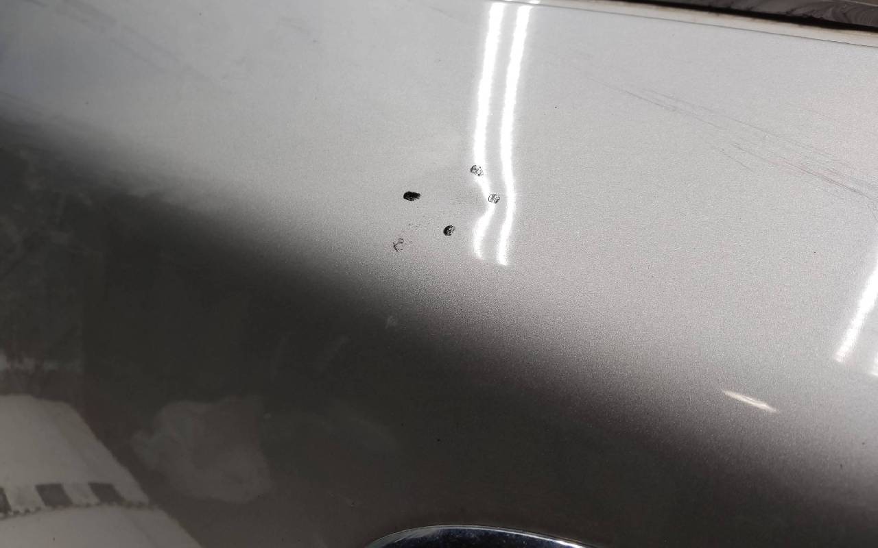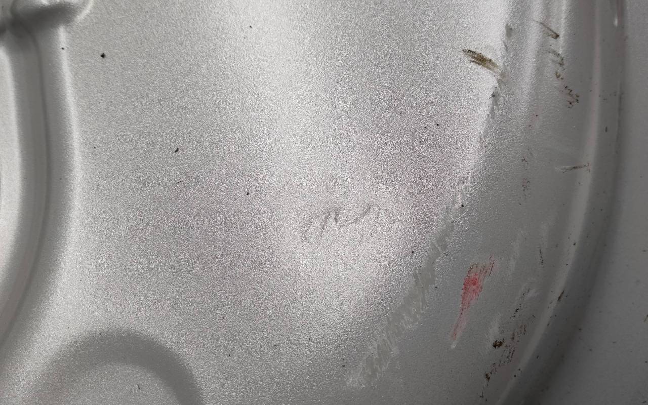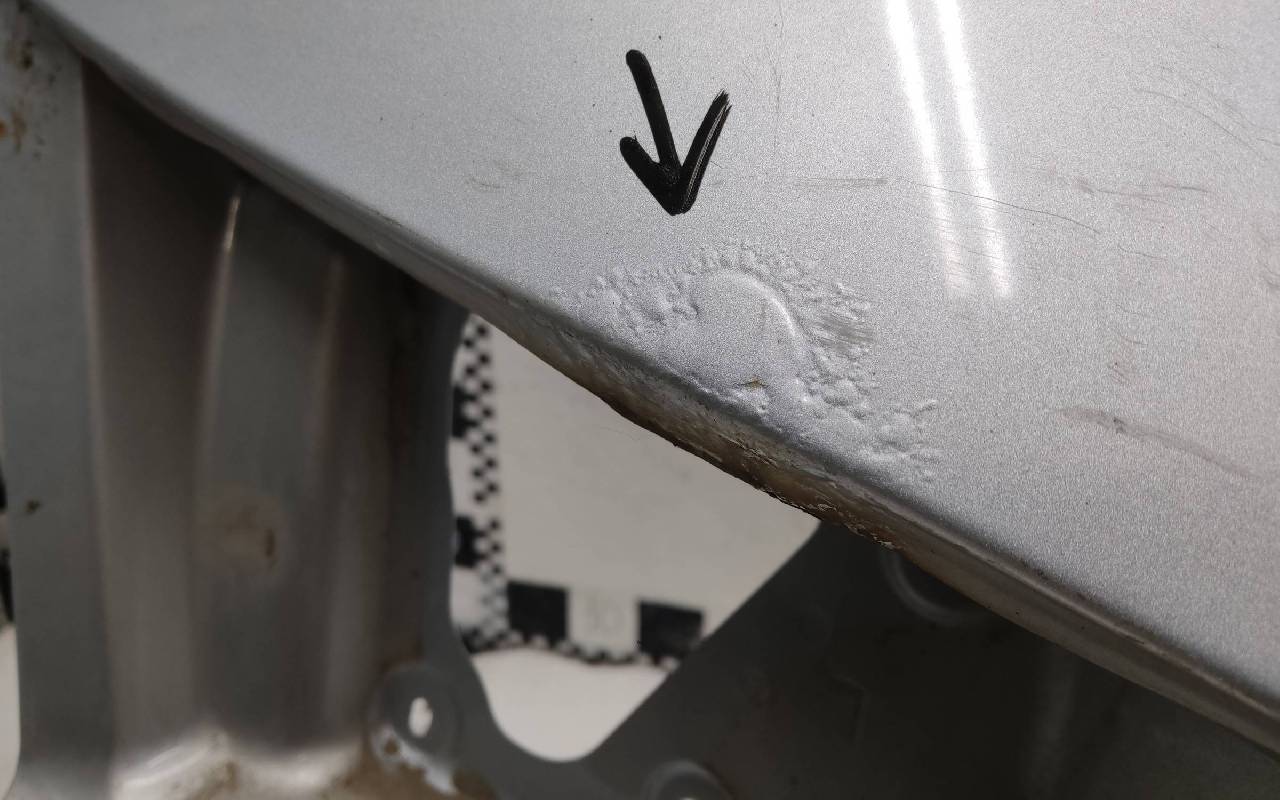 Состояние детали хорошее. Серебристого цвета. Скол, вздутие ЛКП. Вмятинки. Потребуется незначительный ремонт
