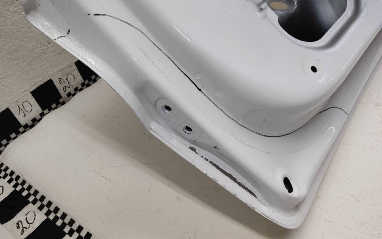 Состояние детали хорошее. Белого цвета, скол ЛКП. Вмятина, дефект на внутренней поверхности. Потребуется ремонт