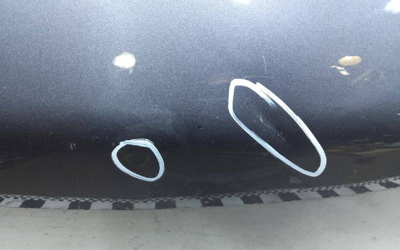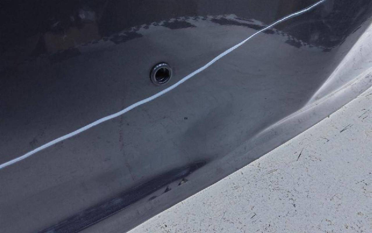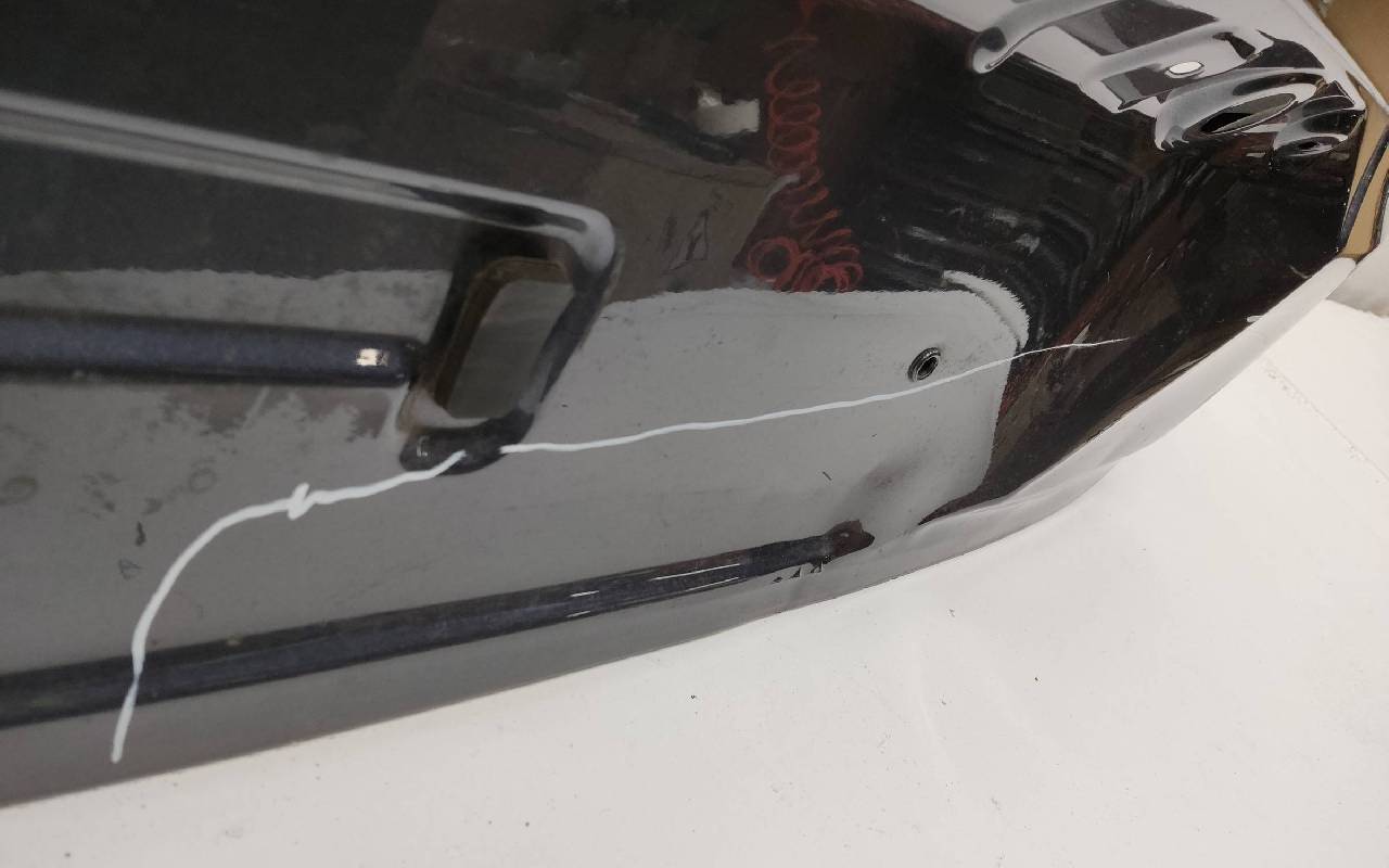 Состояние детали хорошее. Темно-серого цвета, скол ЛКП. Небольшие вмятинки. Потребуется ремонт