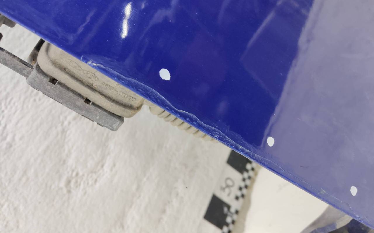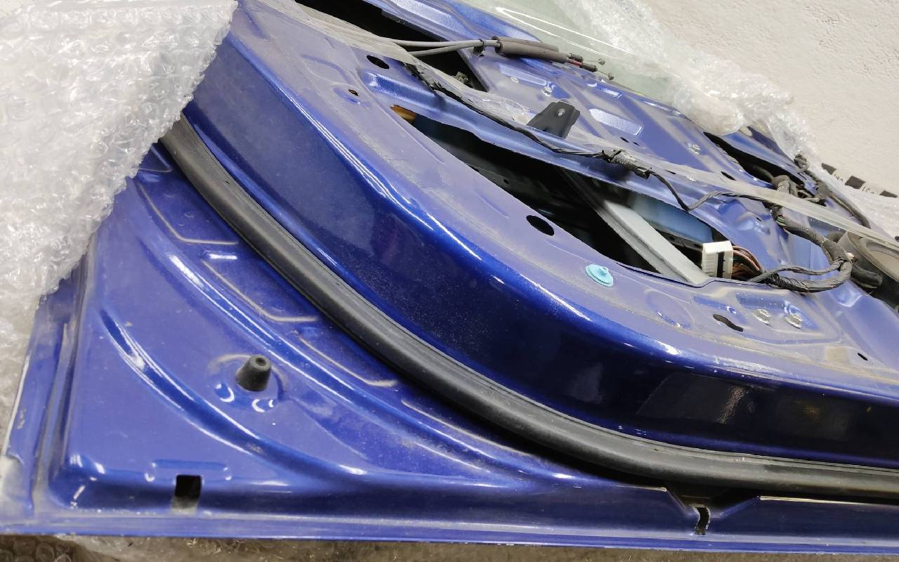 Состояние детали хорошее. Синего цвета (повторно окрашена) в сборе без обшивки. Стекло в плёнке, скол ЛКП. Небольшие транспортировочные вмятинки на стойке и по передней кромке. Общ.вес: 24,2кг. Может потребоваться незначительный ремонт. ПРОДАЖА СТРОГО В СБОРЕ!