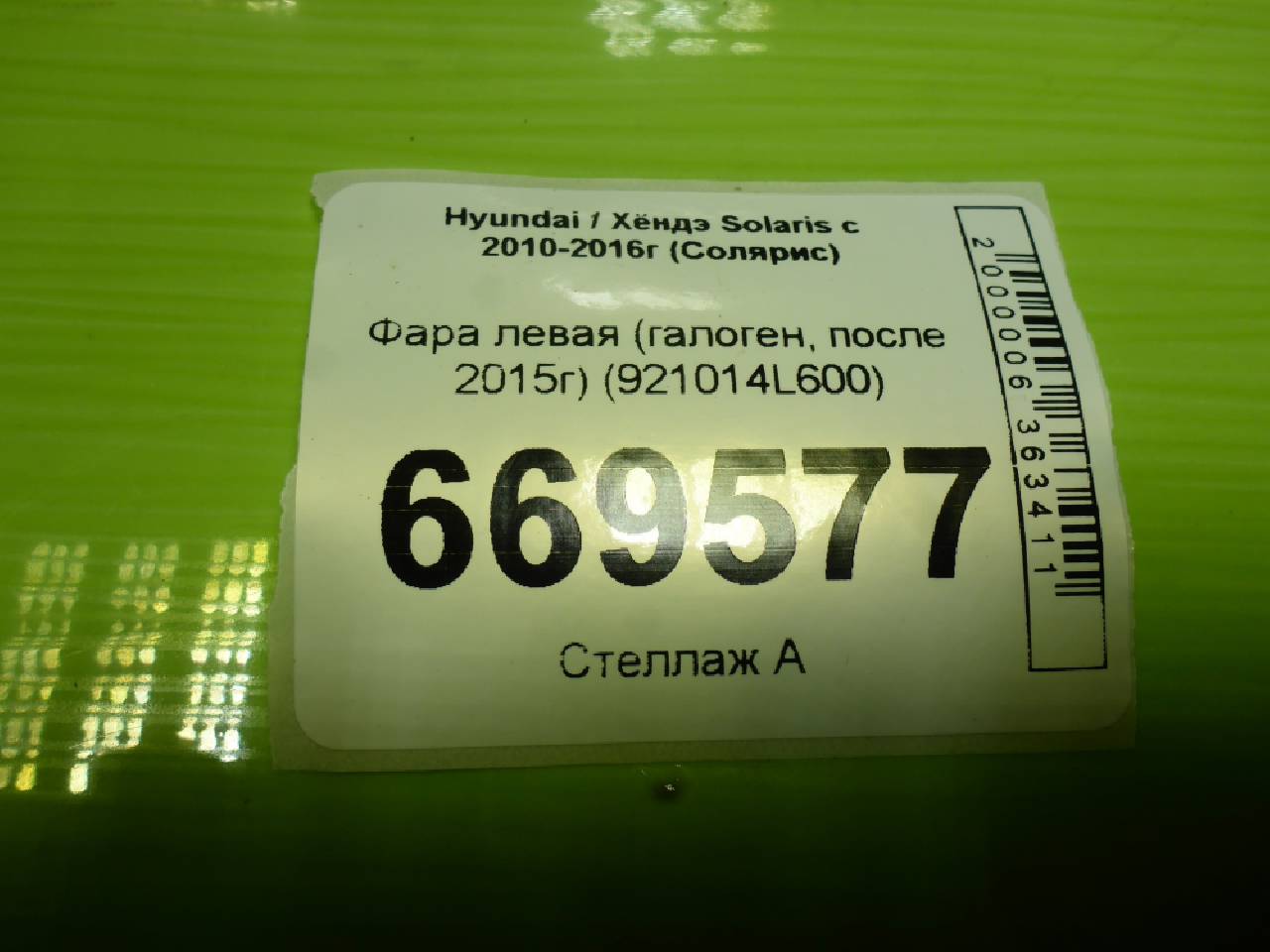 Деталь: Hyundai Solaris - Фара левая (после 2014г галоген) (921014L600)