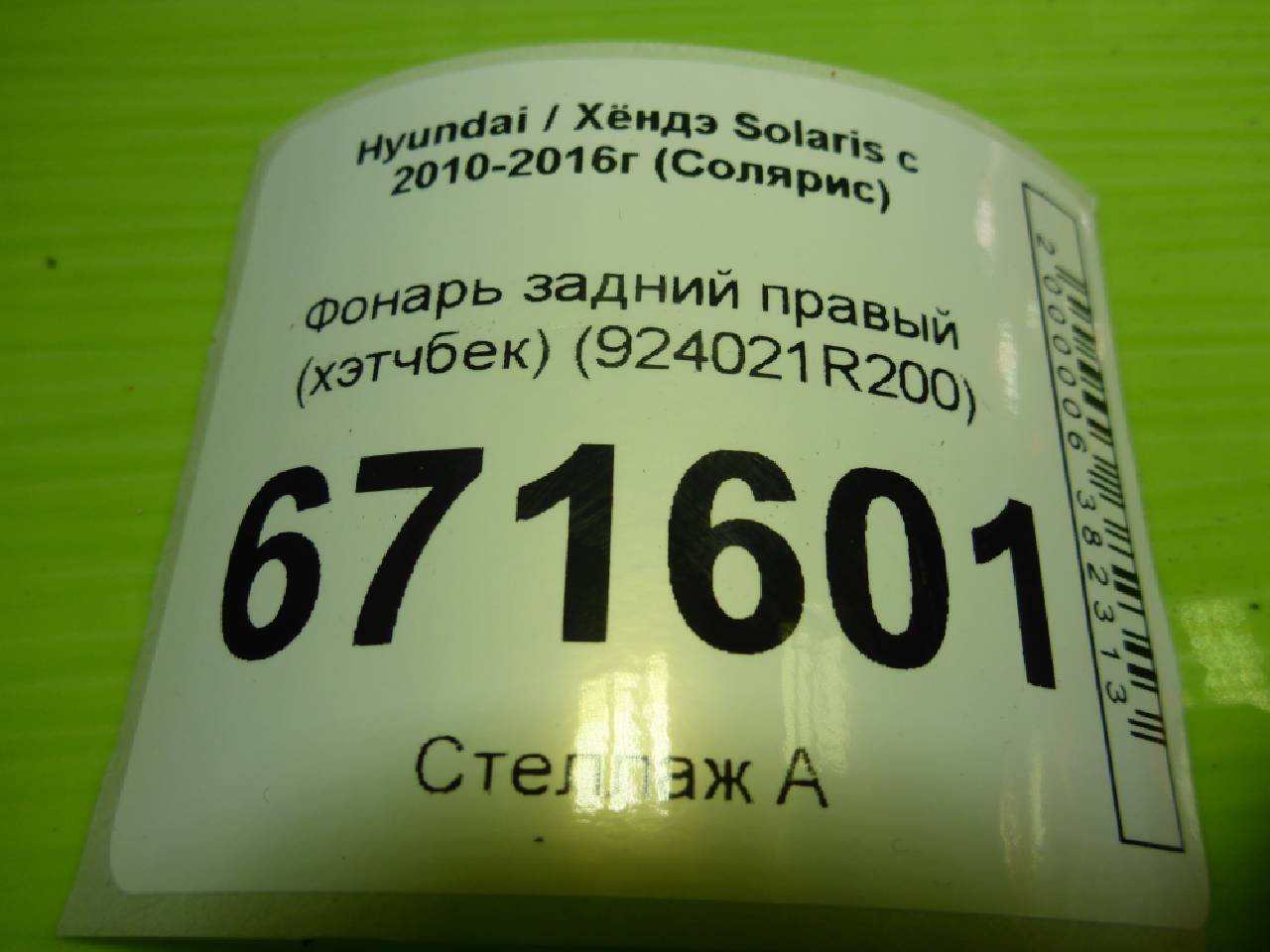 Деталь: Hyundai Solaris - Фонарь задний правый (хэтчбек) (924021R200)