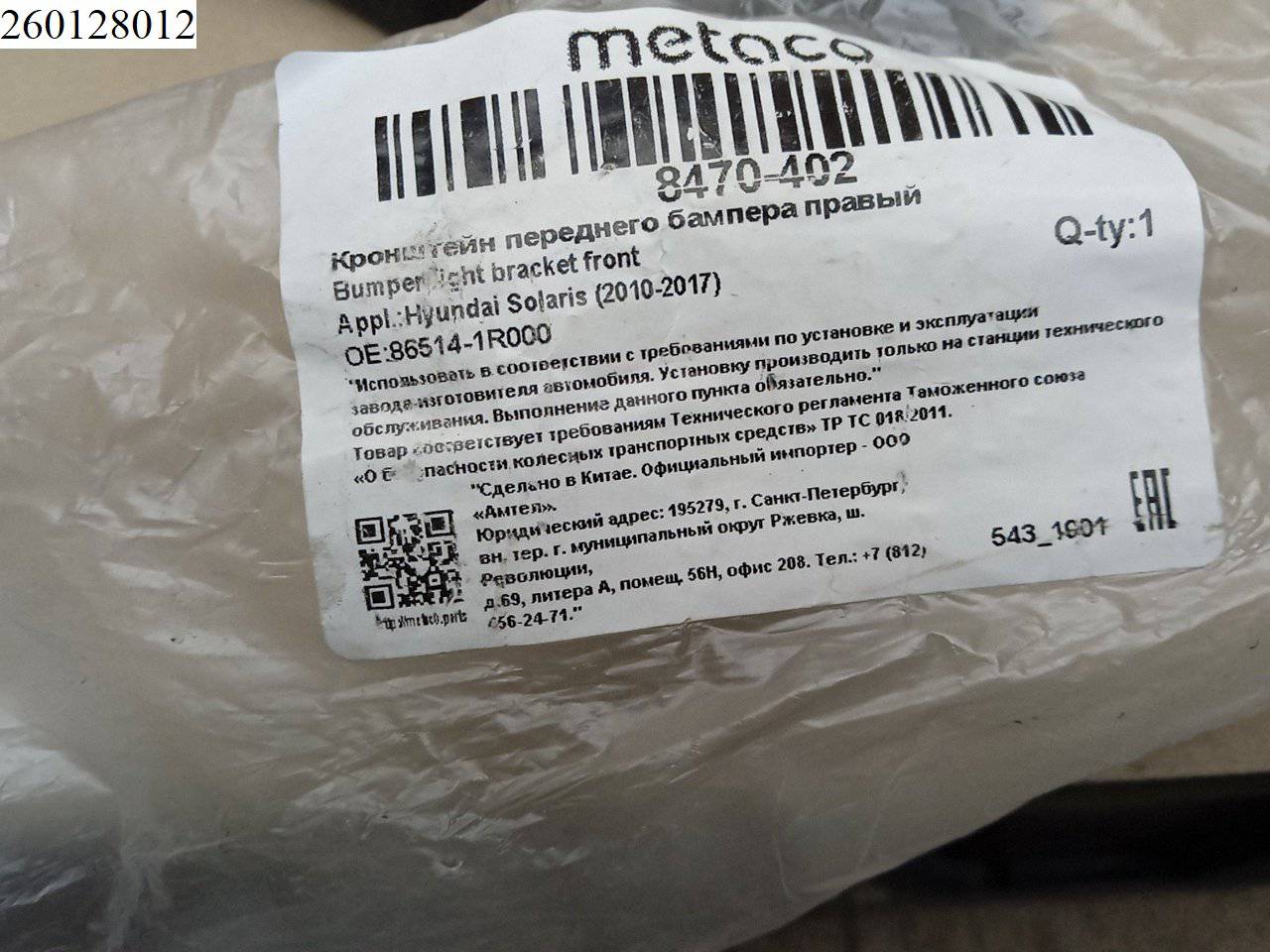 Деталь: Hyundai Solaris - Кронштейн бампера переднего правый