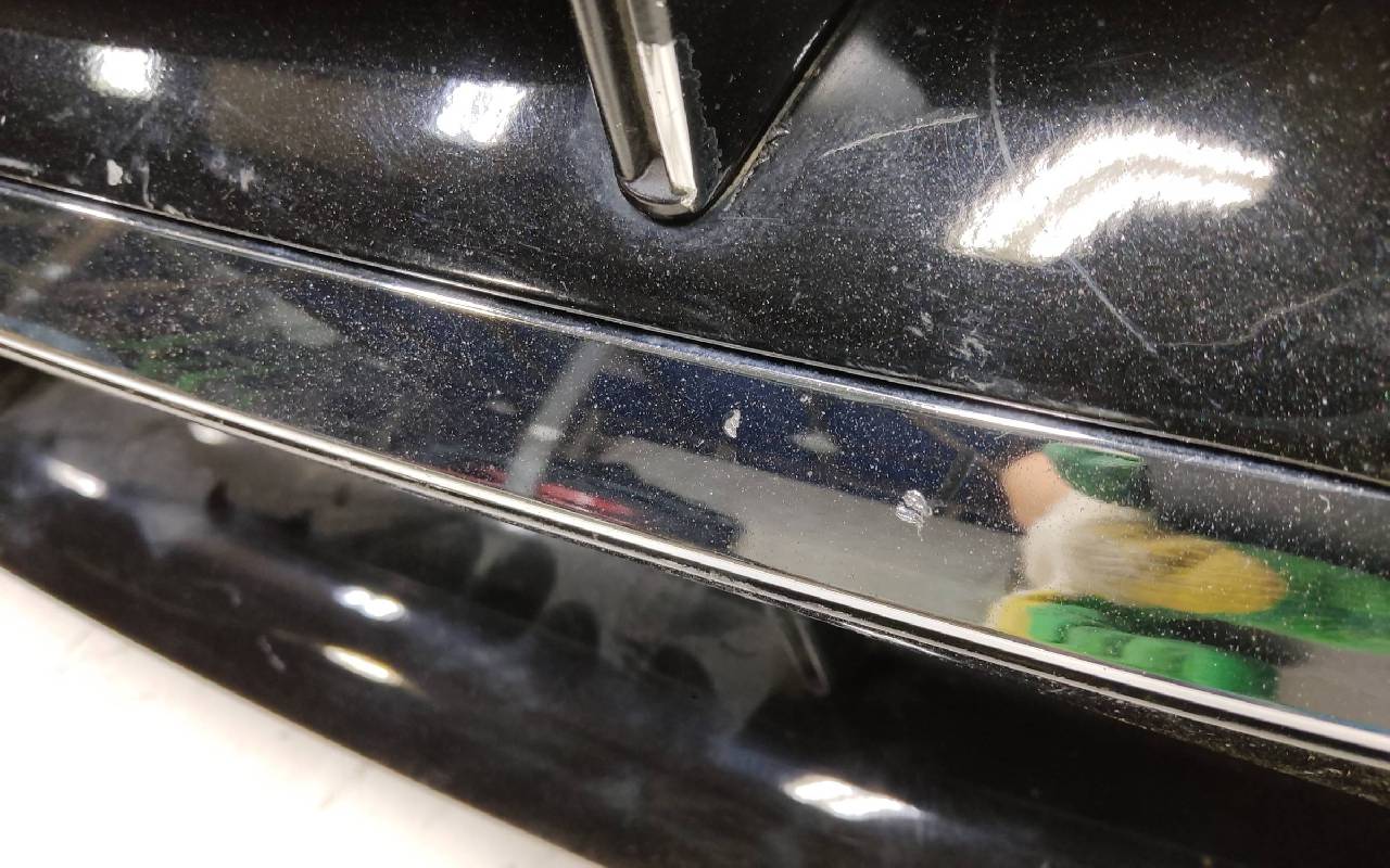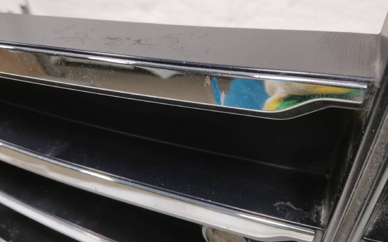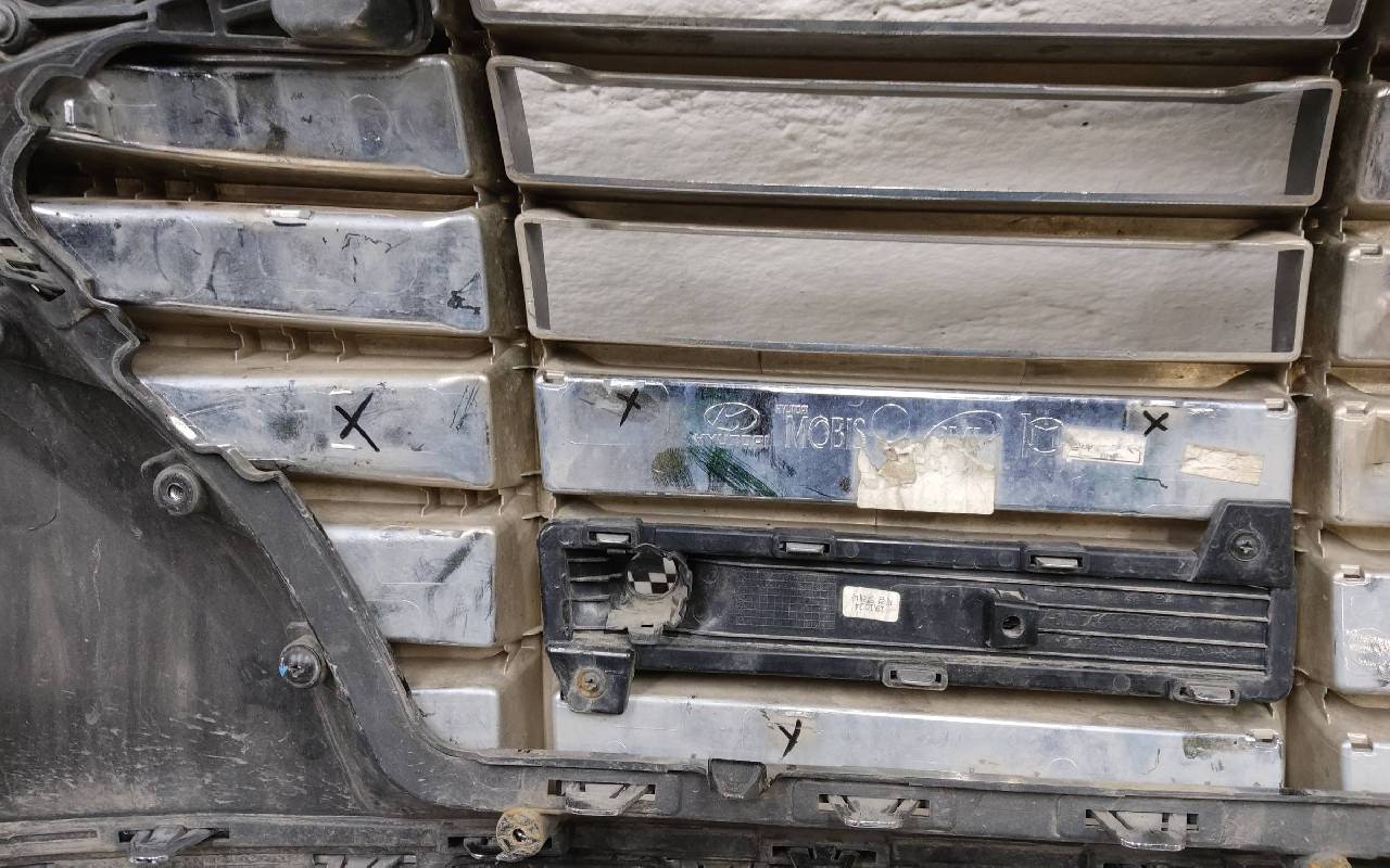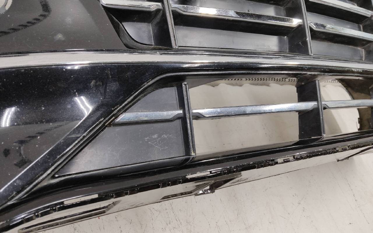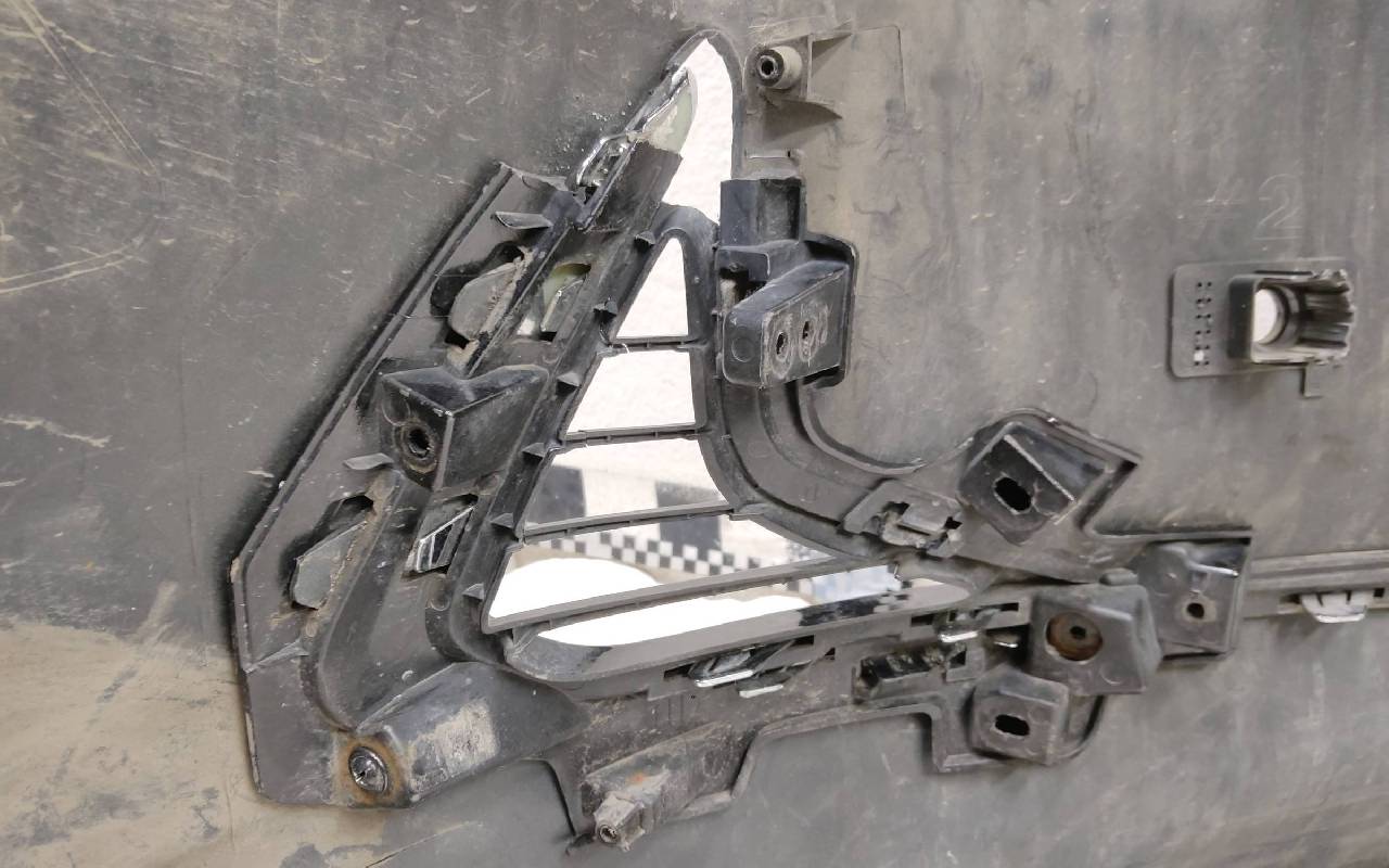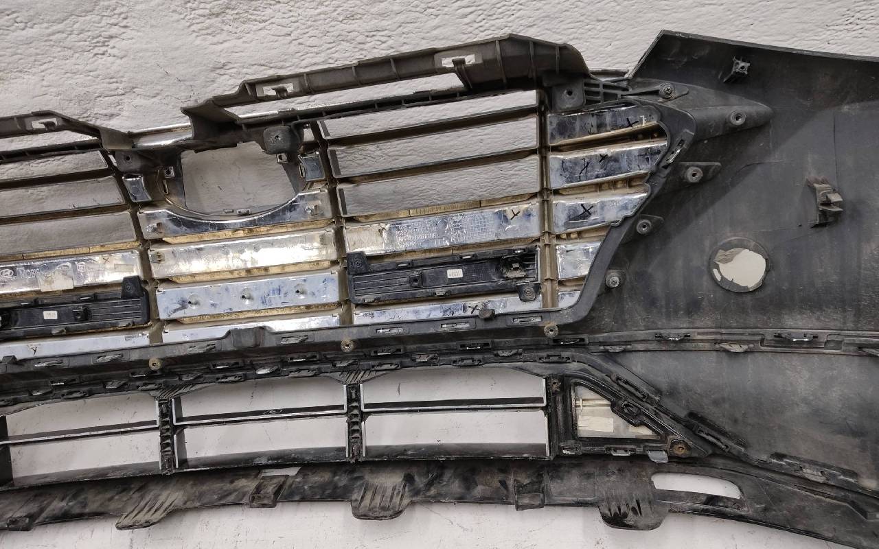 Состояние детали хорошее. Чёрного цвета под парктроники. После небольшого ремонта. В сборе с решетками и хромом. Царапинки, левая рамка сломана. Крепления бампера целые. Отсутствует несколько креплений и направляющих на решетках. Под покраску. Может потребоваться незначительный дополнительный ремонт