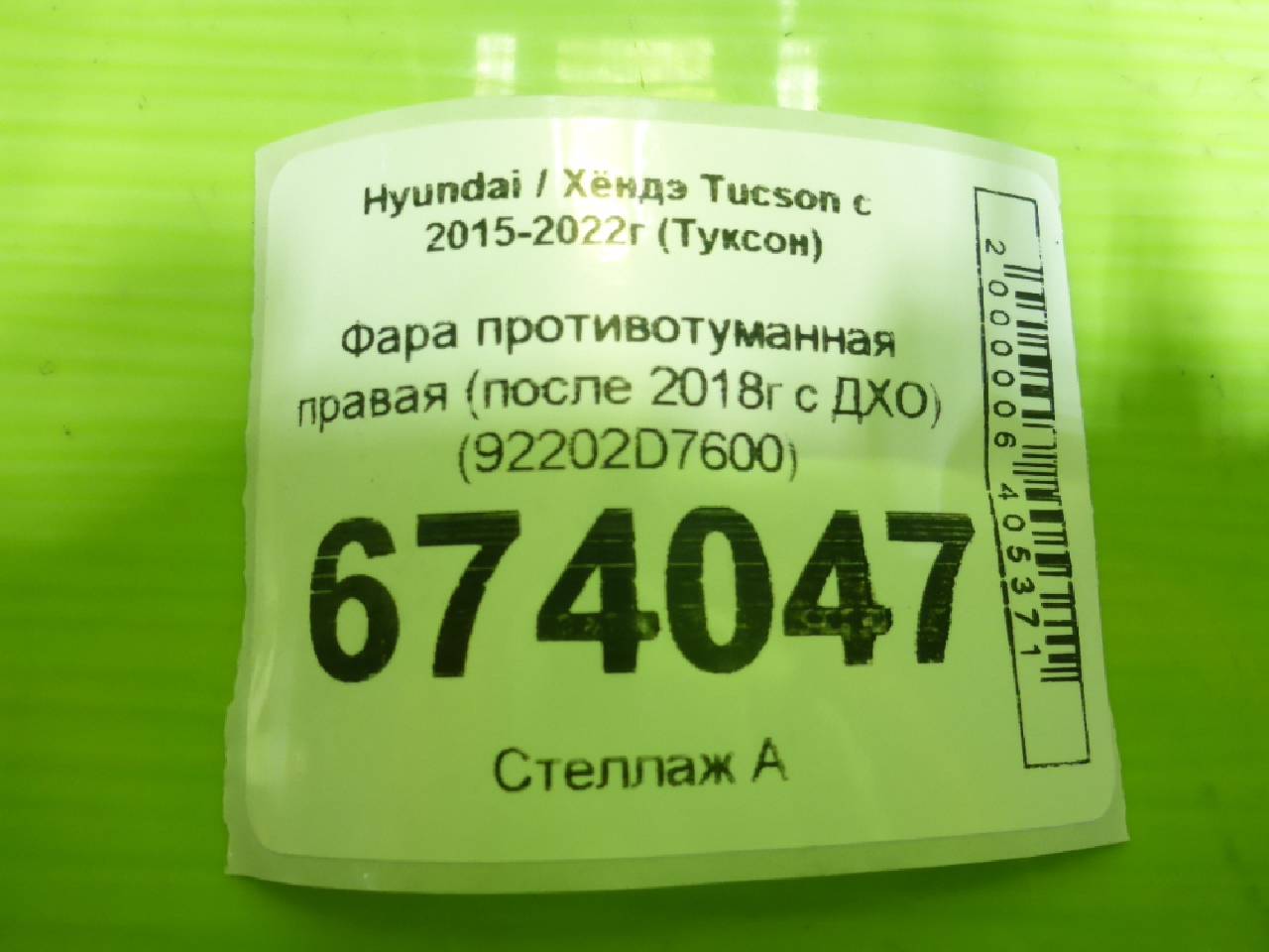 Деталь: Hyundai Tucson 3 - Фара противотуманная правая (после 2018г с ДХО) (92202D7600)