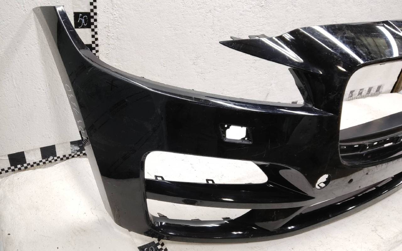 Бампер передний Ягуар ф Пейс черного цвета под парктроник и омыватели фар оригинал б/у после незначительного ремонта все крепления на месте. . .