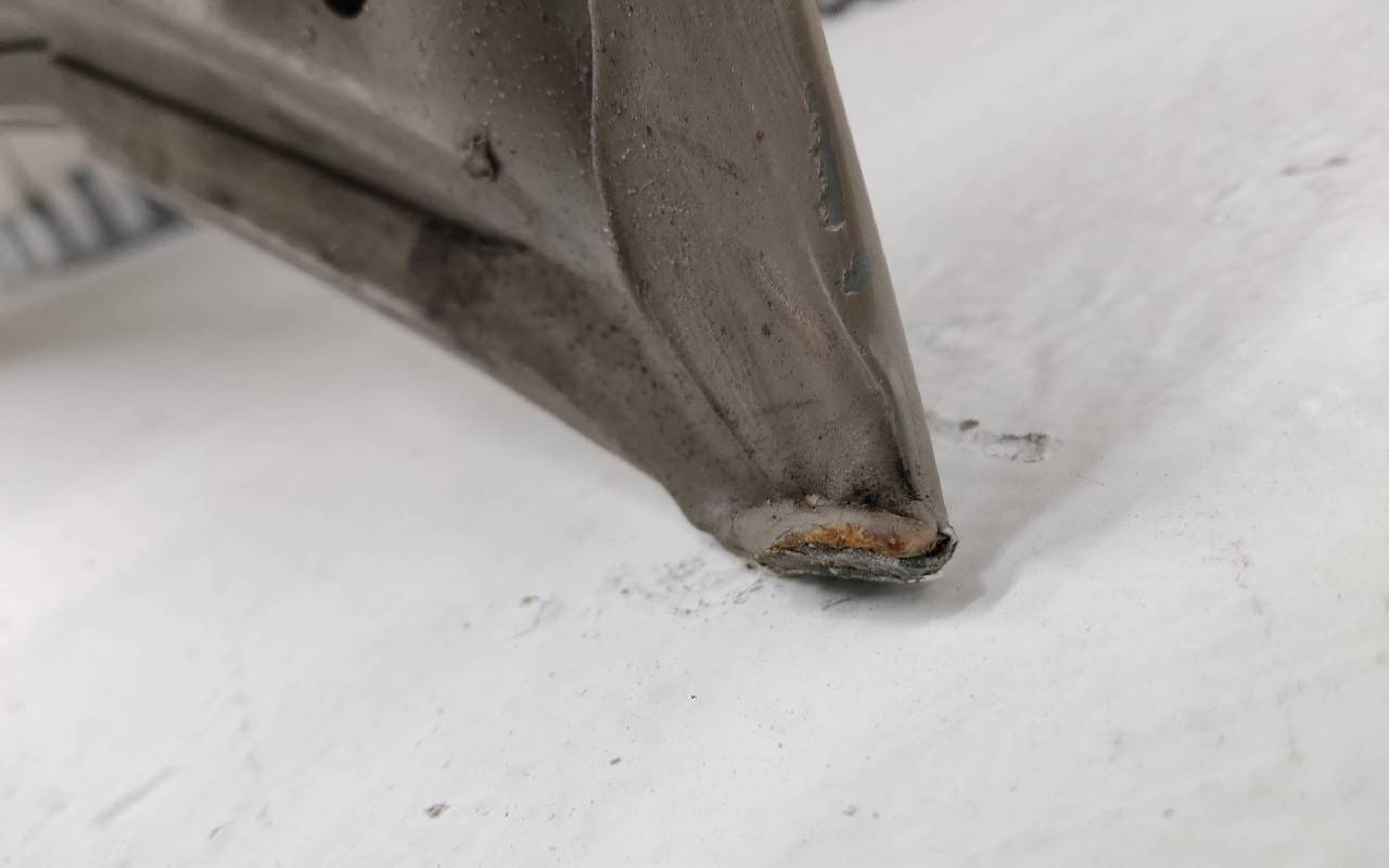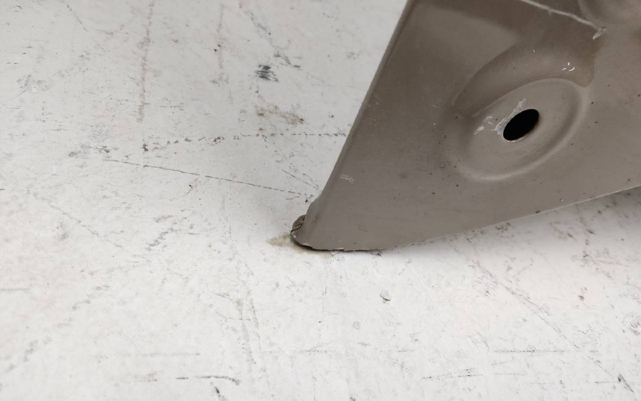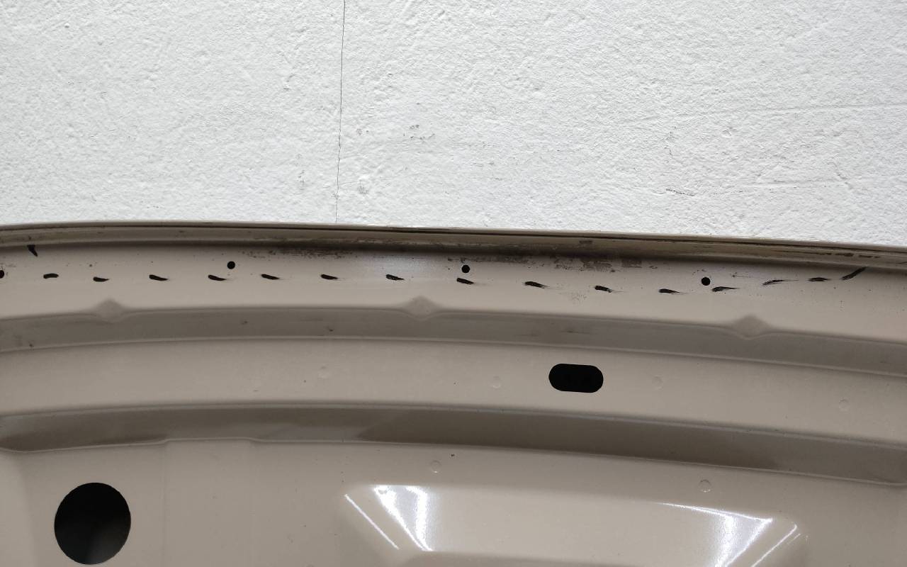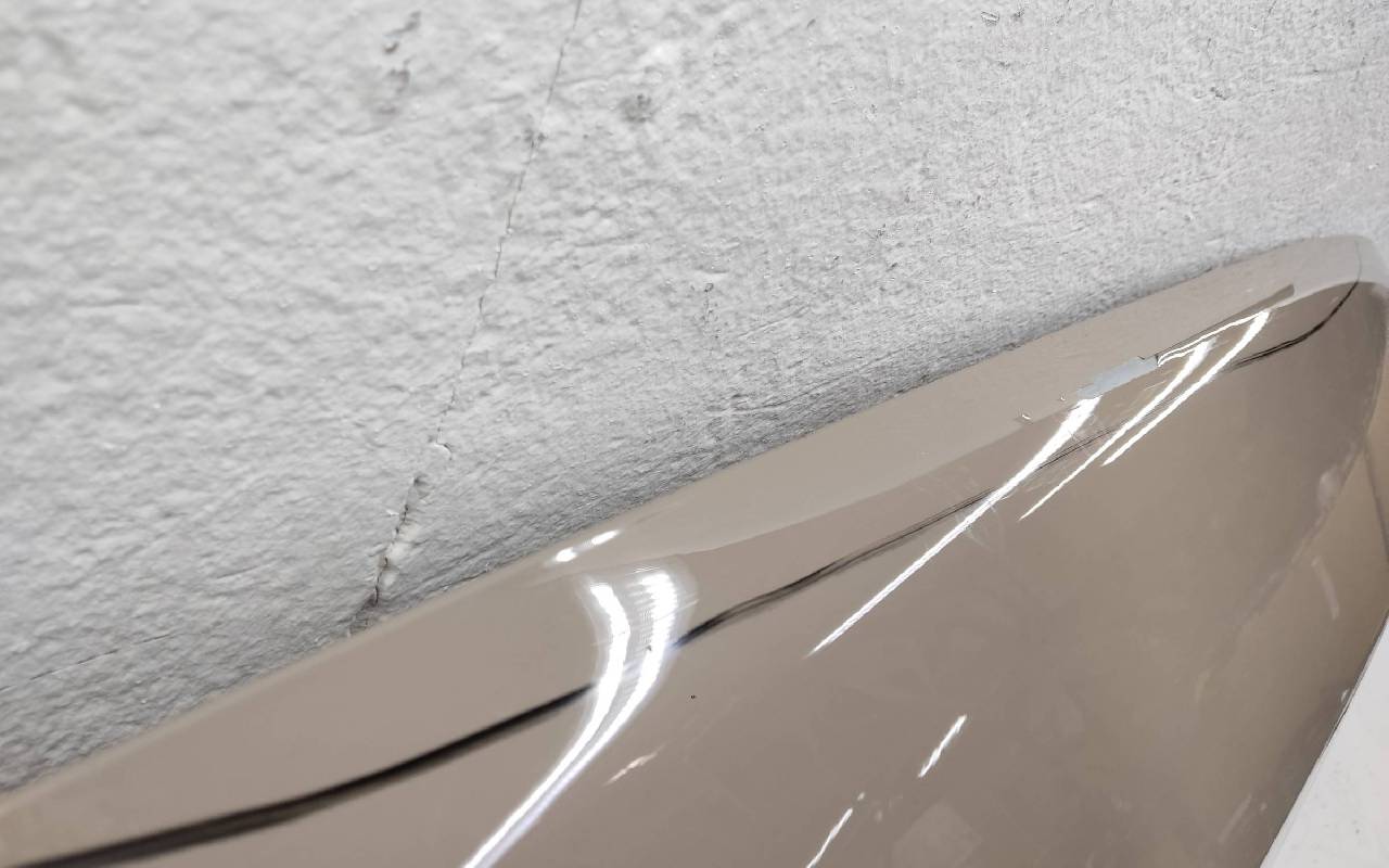 Состояние детали хорошее. Светло-коричневого цвета, скол ЛКП. Небольшая вмятина, тычок. Погнуты передняя кромка и уголки. Потребуется незначительный ремонт