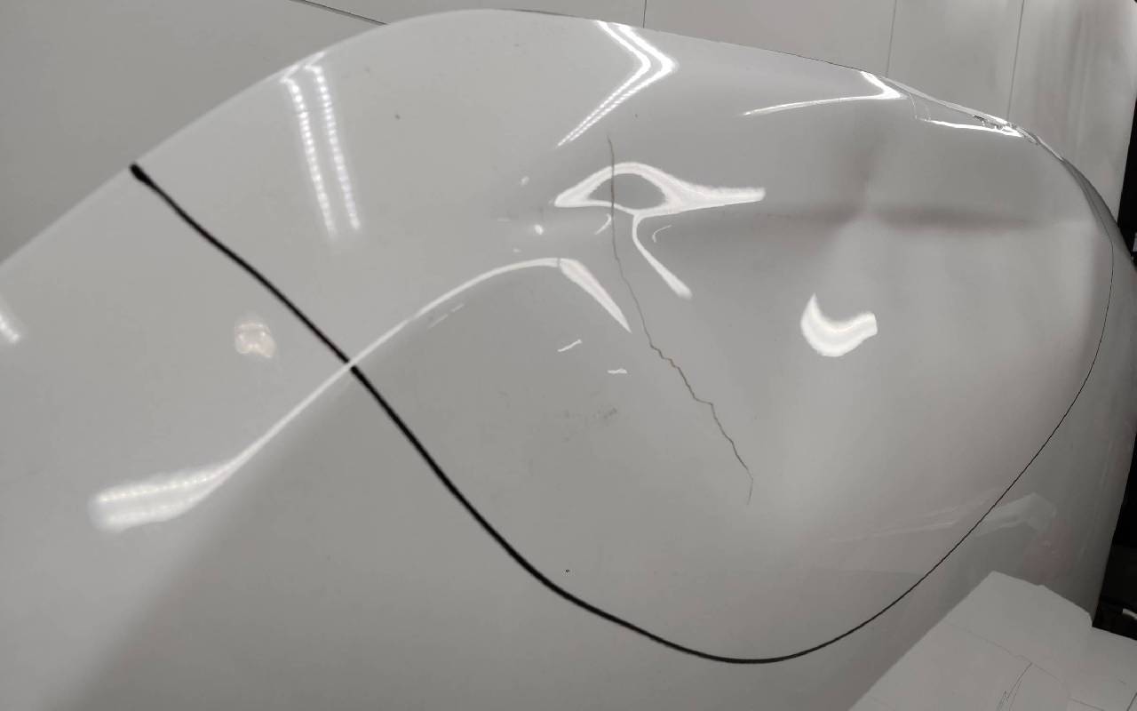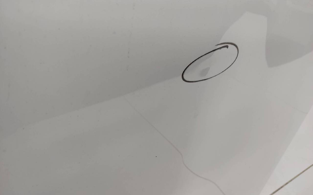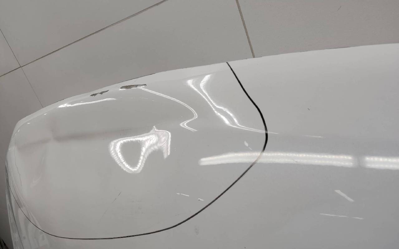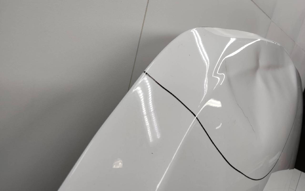 Состояние детали удовлетворительное. Белого цвета (перламутр), скол ЛКП. Вмятины. Потребуется ремонт