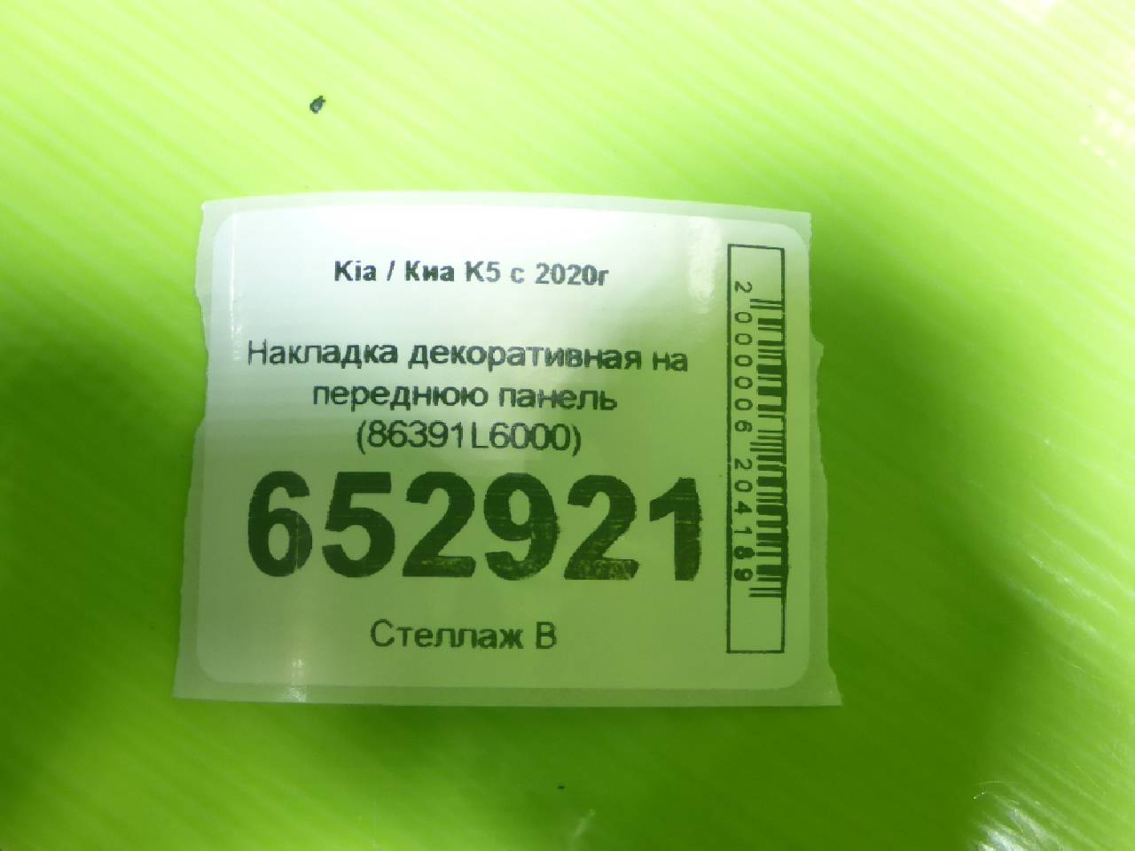 Деталь: Kia K5 - Накладка декоративная на переднюю панель (86391L6000)