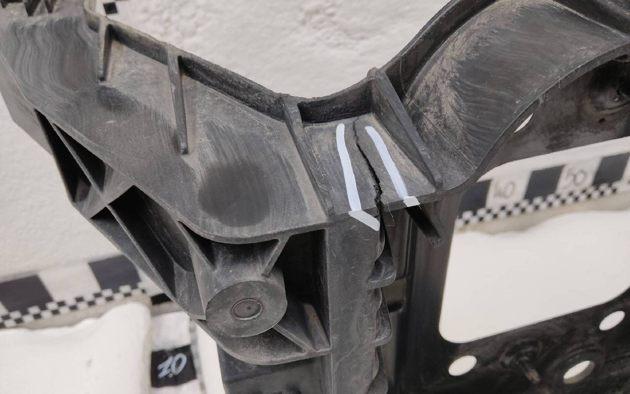Состояние детали хорошее. Трещина. Отсутствуют одн нижнее крепление и направляющая. Потребуется ремонт