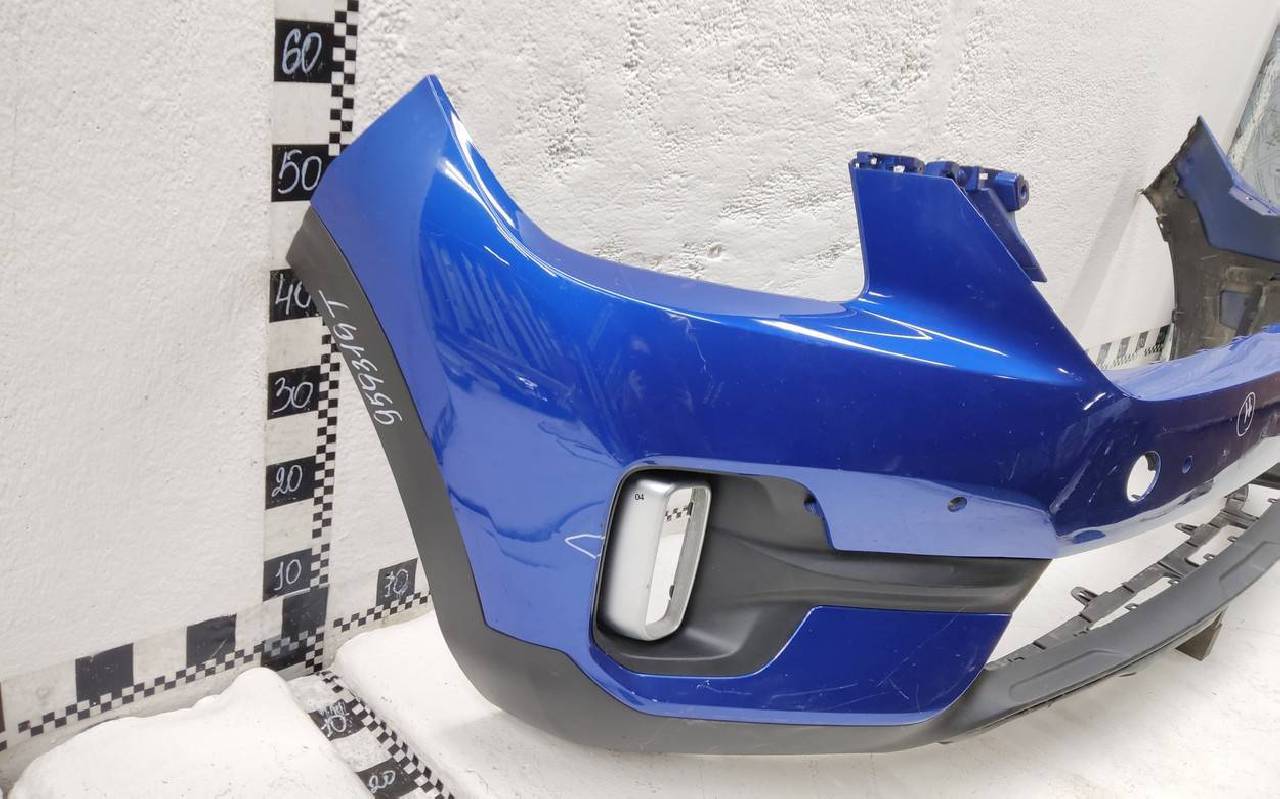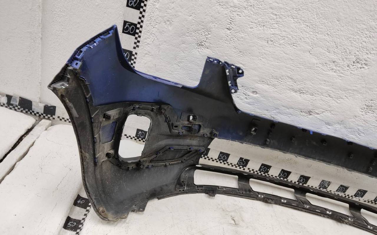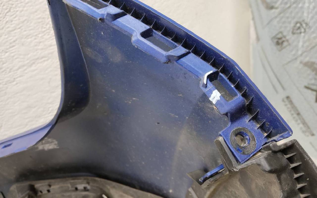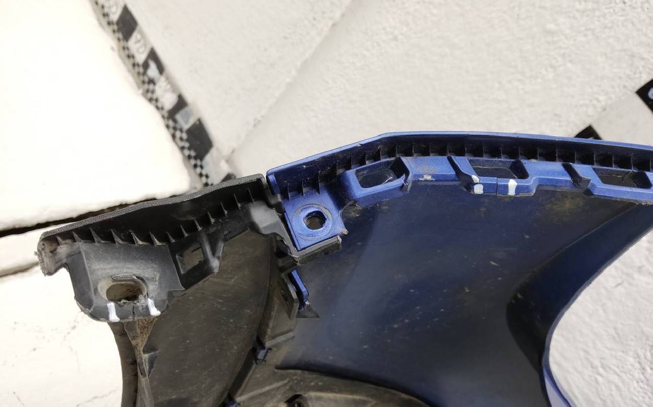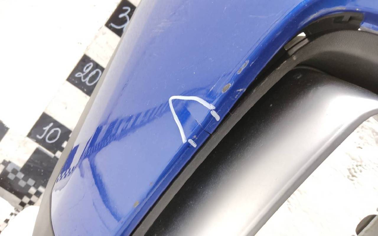 Состояние детали хорошее. Синего цвета. Трещинка. Потёртости. Лопнуло два замка на бампере и один на юбке. Потребуется незначительный ремонт
