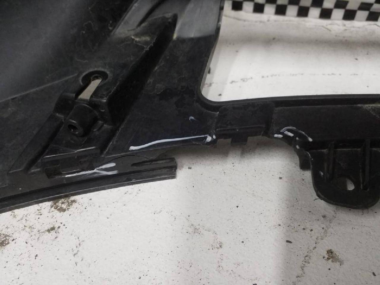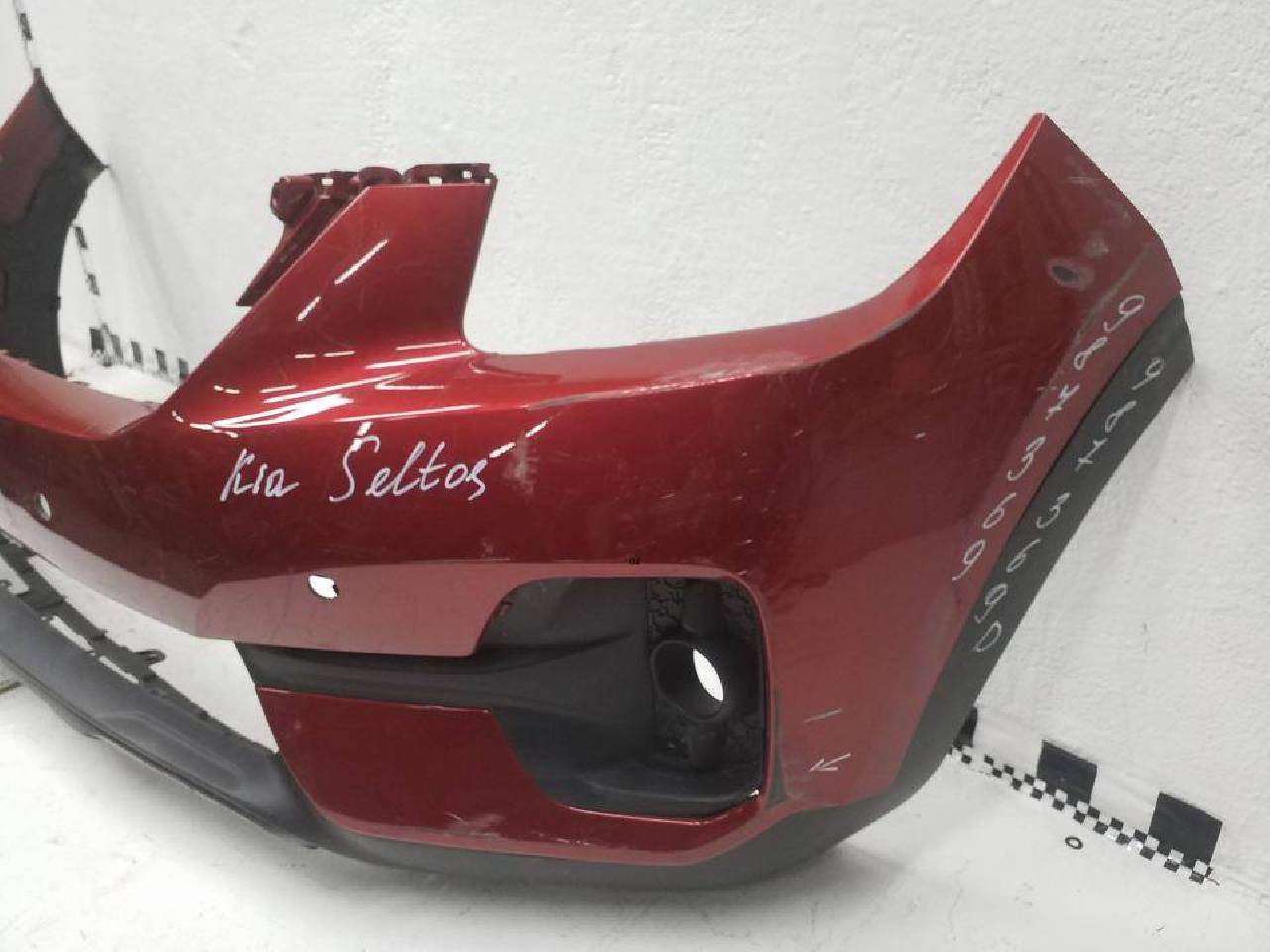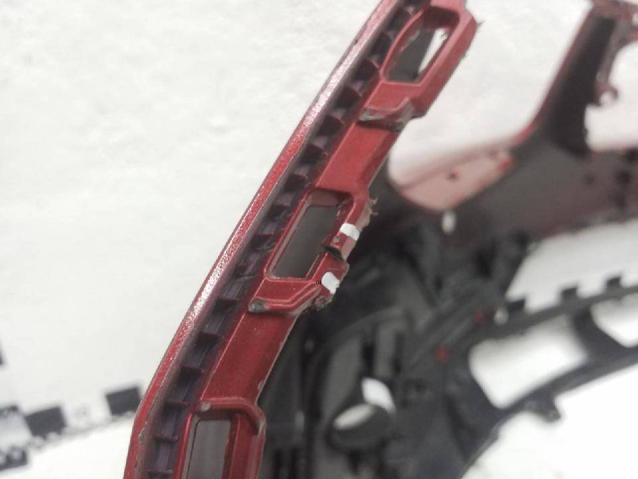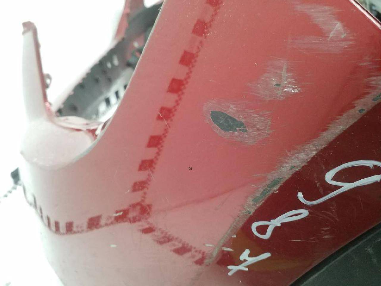 Состояние детали хорошее. Красного цвета под парктроники, следы эксплуатации, потёртости,скол юбки на фото. Дефект трёх креплений. Потребуется ремонт