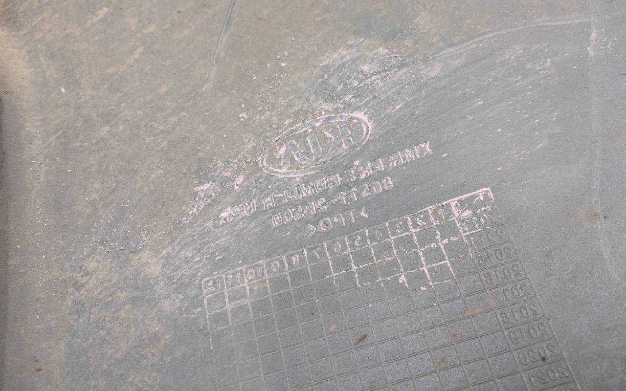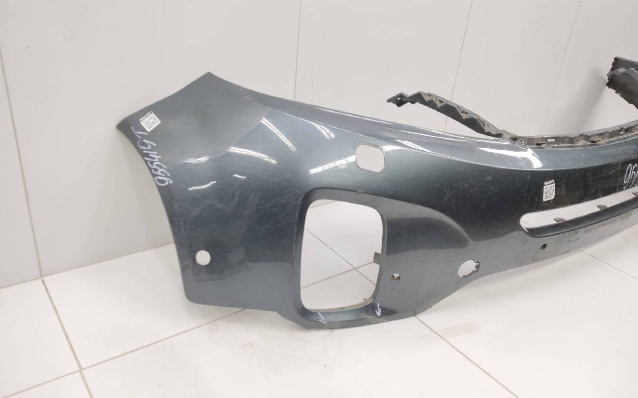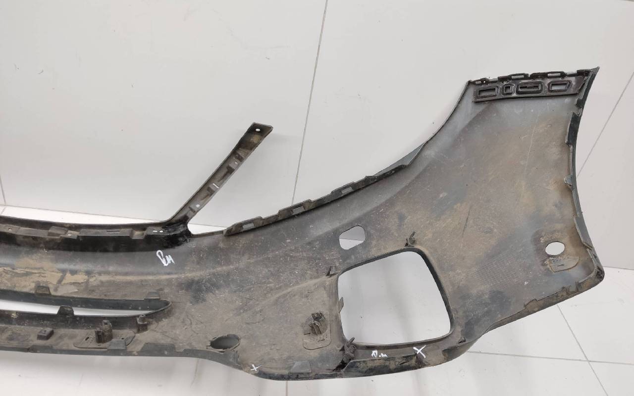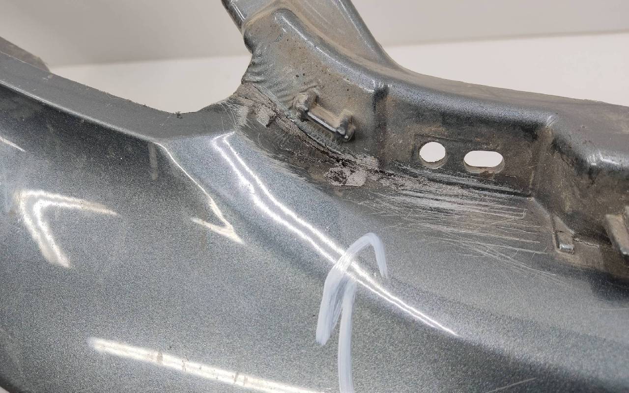 Состояние детали хорошее. Тёмно-серого цвета под парктроники и омыватели фар. После небольшого ремонта. Царапины. Отсутствуют три крепления под юбку в нижней части и два справа. Потребуется дополнительный ремонт