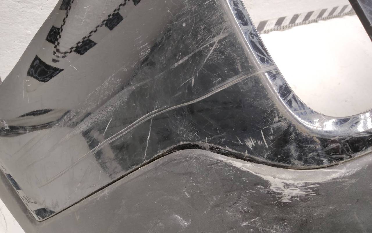 Состояние детали хорошее. Чёрного цвета под парктроники. Юбка после небольшого ремонта. Отсутствуют три крепления под левую ПТФ. Потребуется дополнительный ремонт