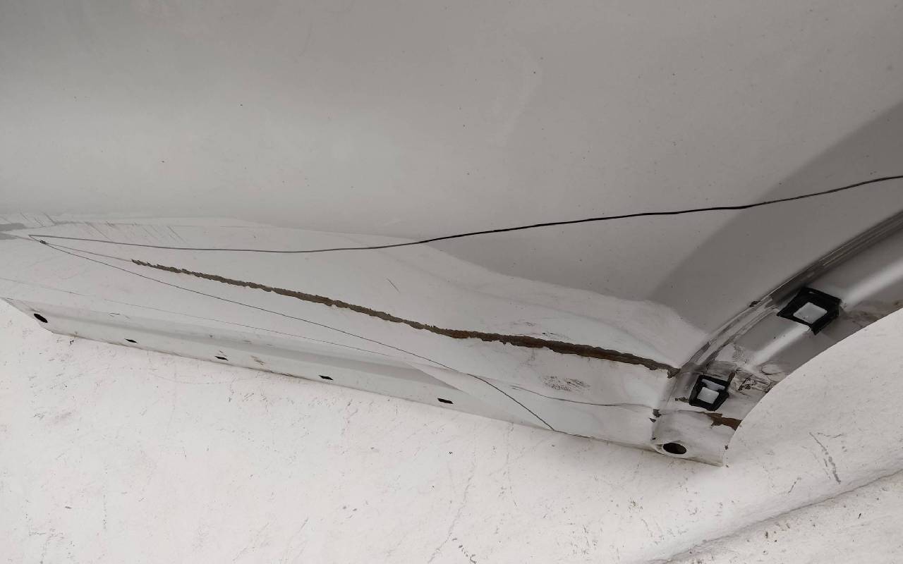 Состояние детали удовлетворительное. Белого цвета, скол ЛКП. Вмятины, дефект на внутренней поверхности. Потребуется ремонт