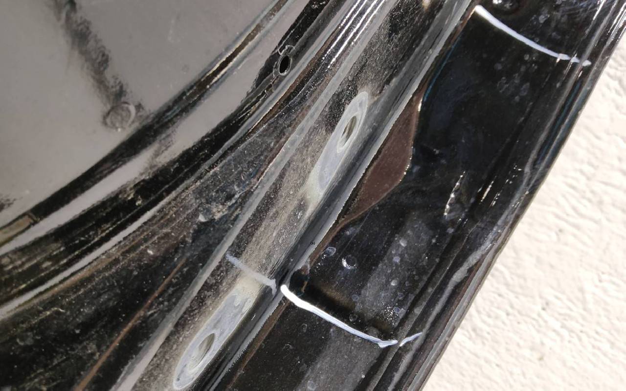 Состояние детали удовлетворительное. Чёрного цвета, скол ЛКП. Вмятины, дефект на внутренней поверхности. Потребуется ремонт