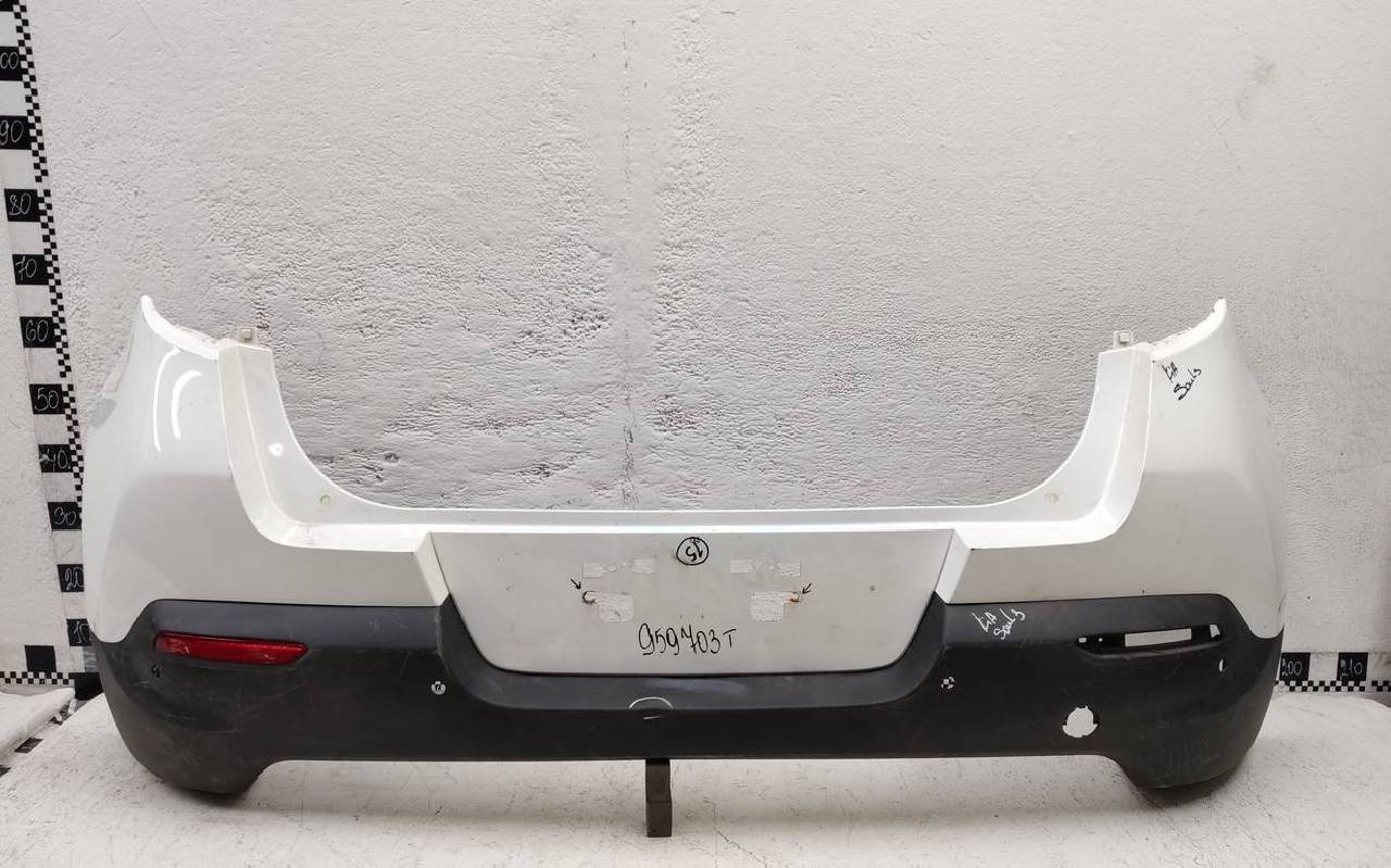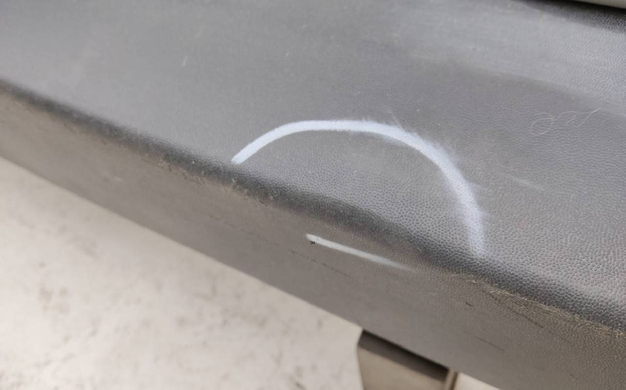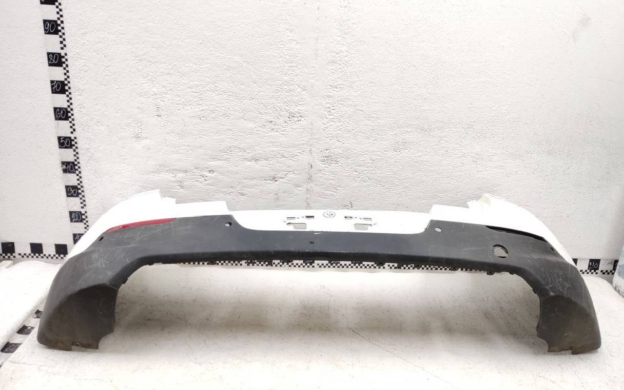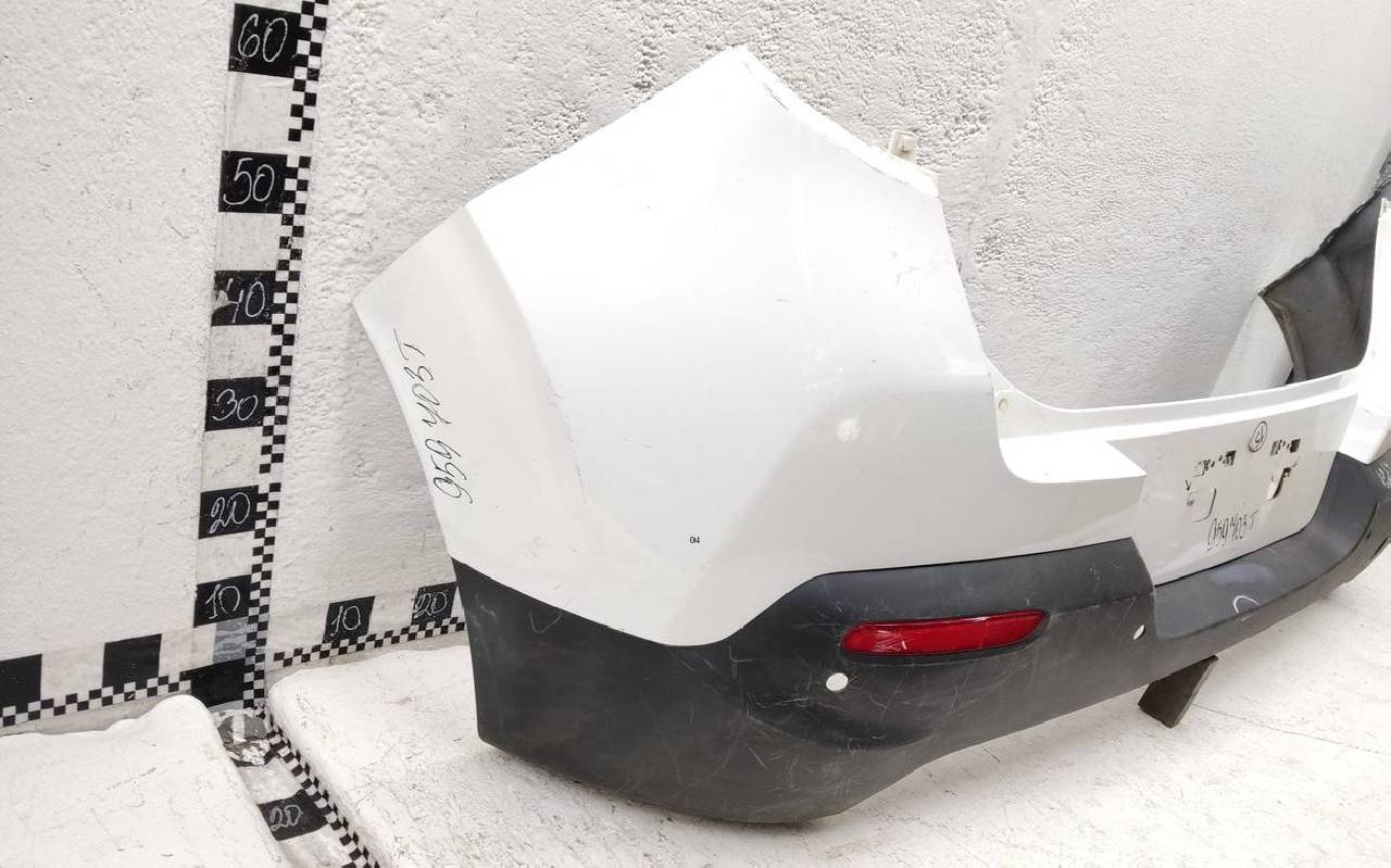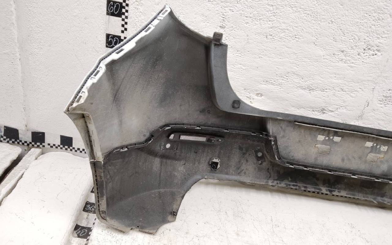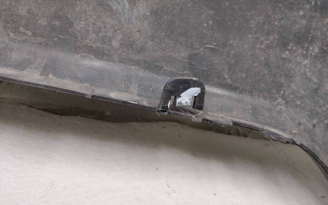 Состояние детали хорошее. Белого цвета под парктроники. Царапины. Вмятинка на текстуре. Дефект бокового кронштейна справа и одного крепления юбки. Потребуется незначительный ремонт