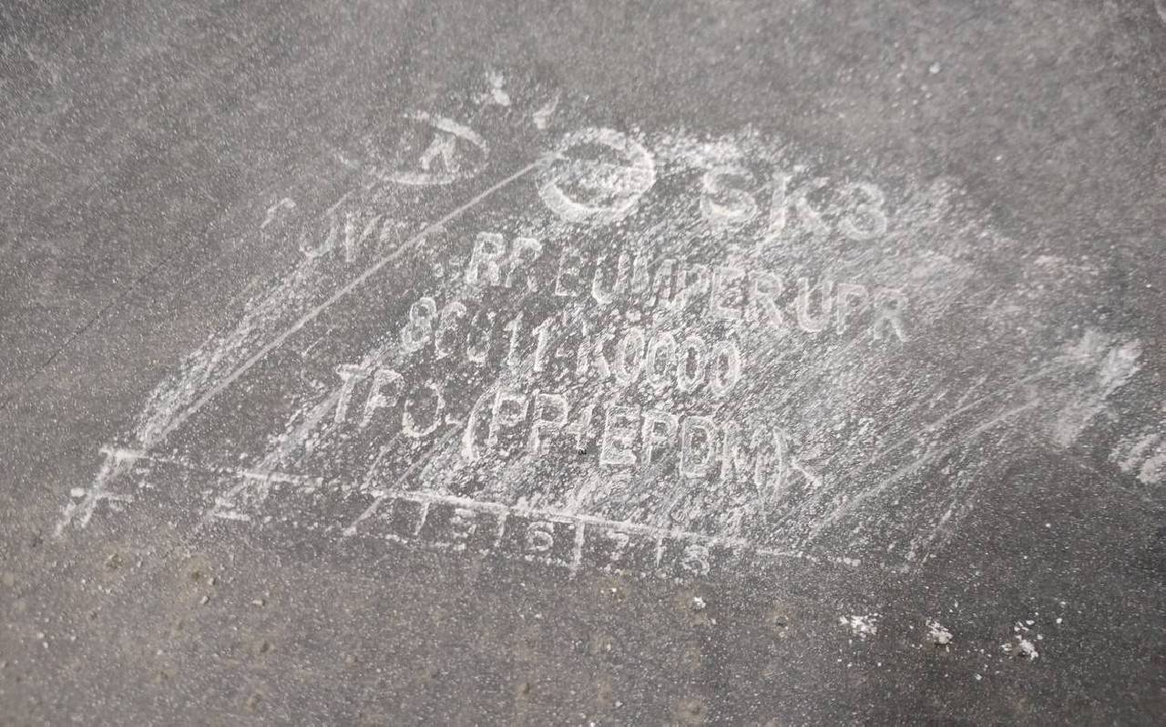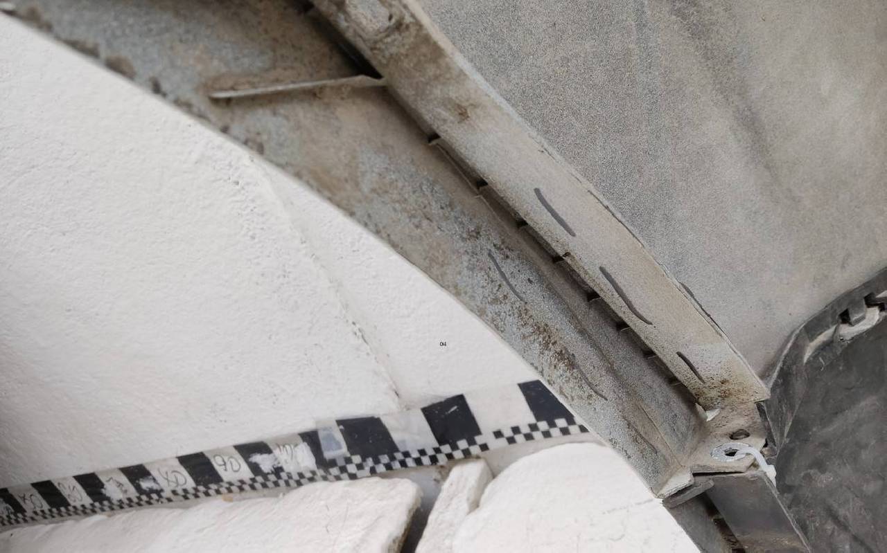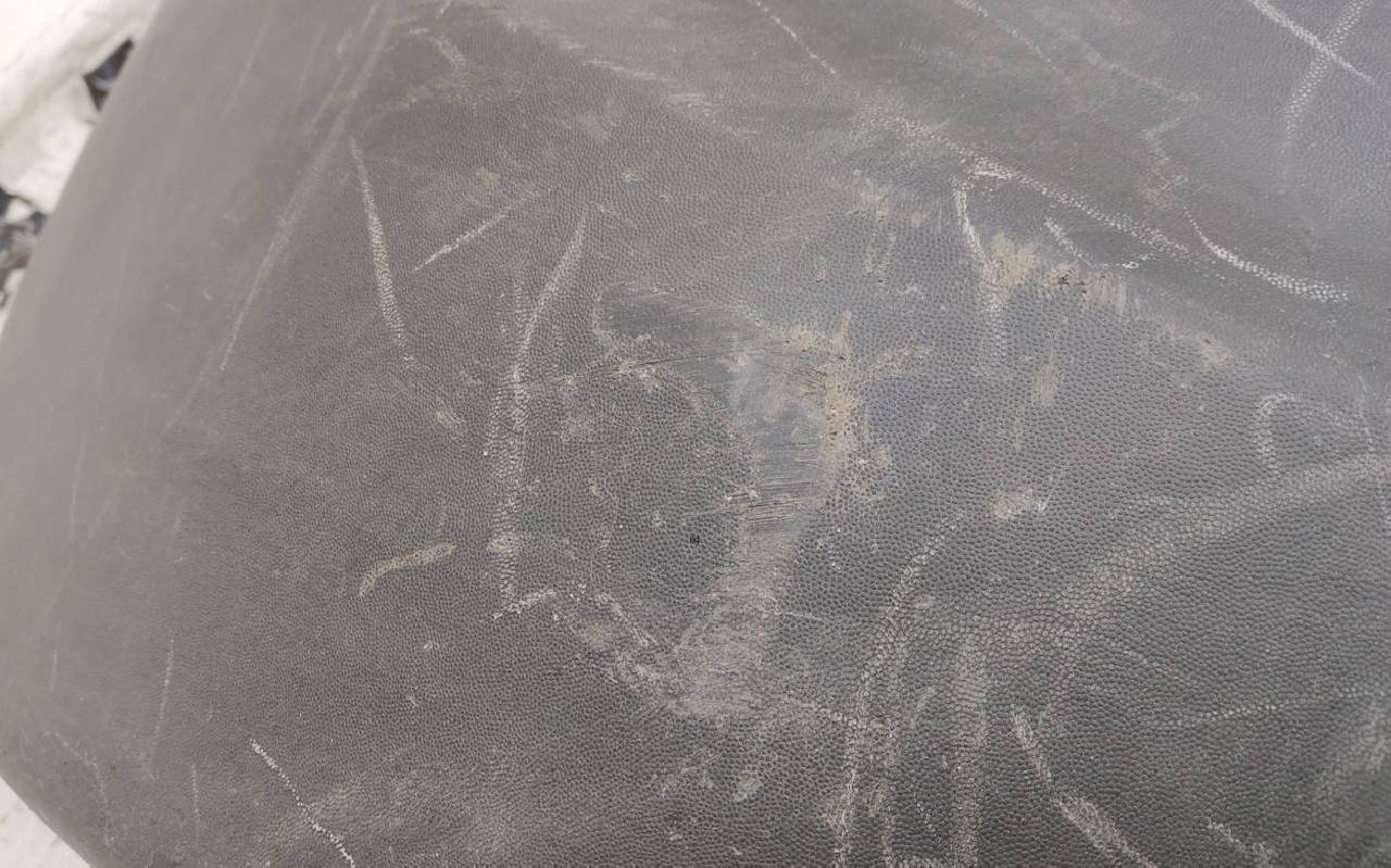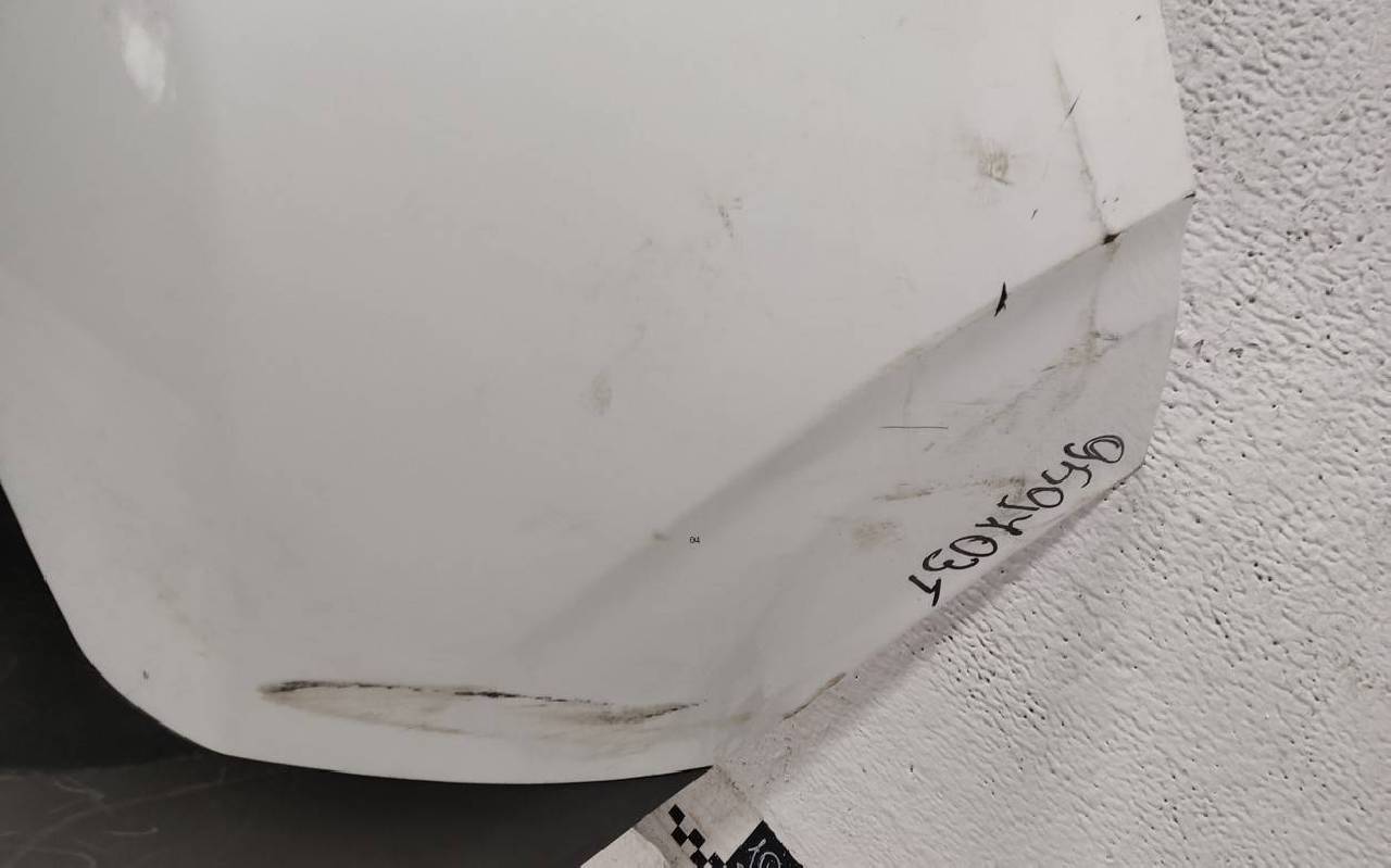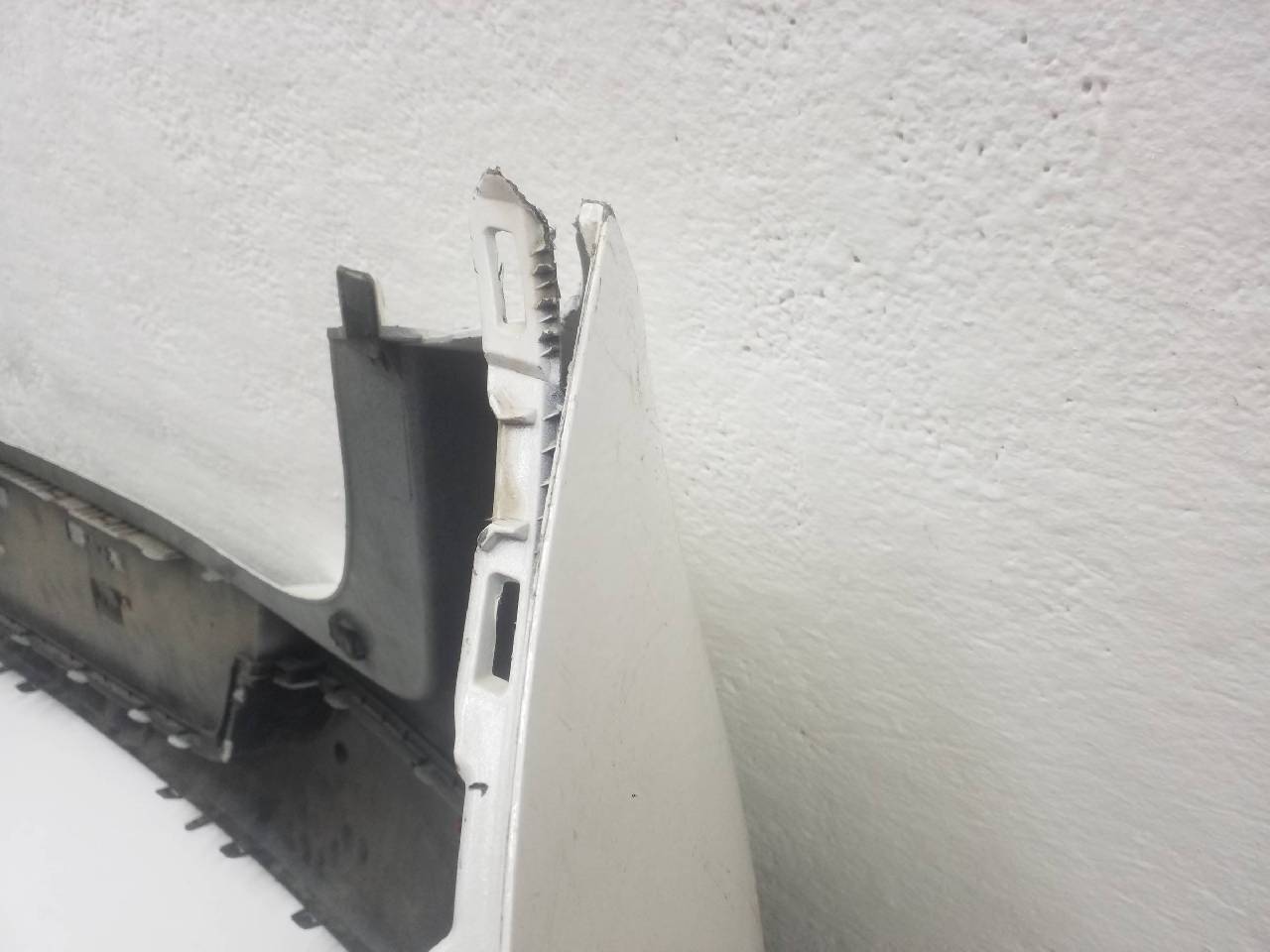 Состояние детали хорошее. Белого цвета под парктроники. Царапины. Вмятинка на текстуре. Дефект бокового кронштейна справа и одного крепления юбки. Потребуется незначительный ремонт