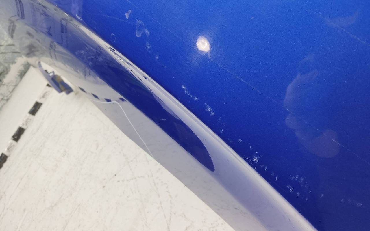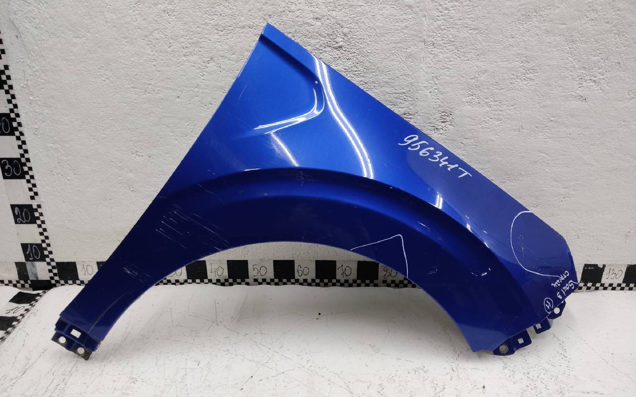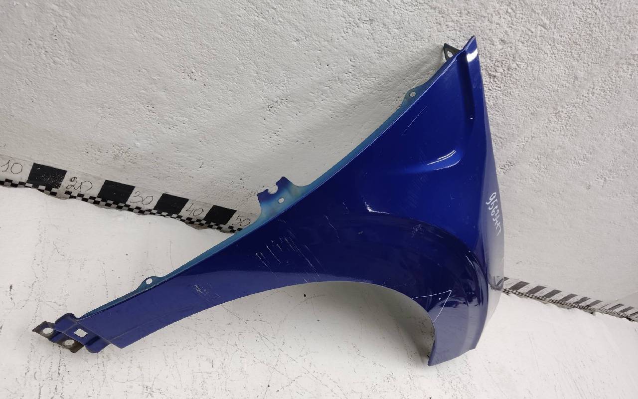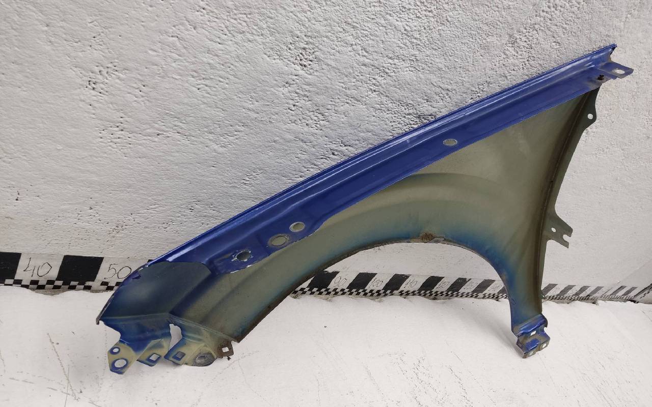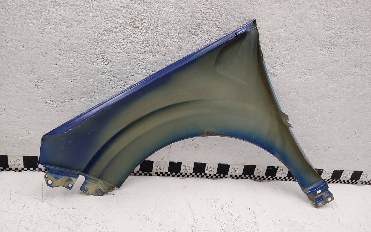 Состояние детали хорошее. Синего цвета, скол ЛКП. Небольшая вмятина в передней части, погнуто по арке. Потребуется ремонт
