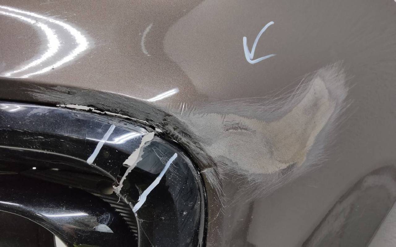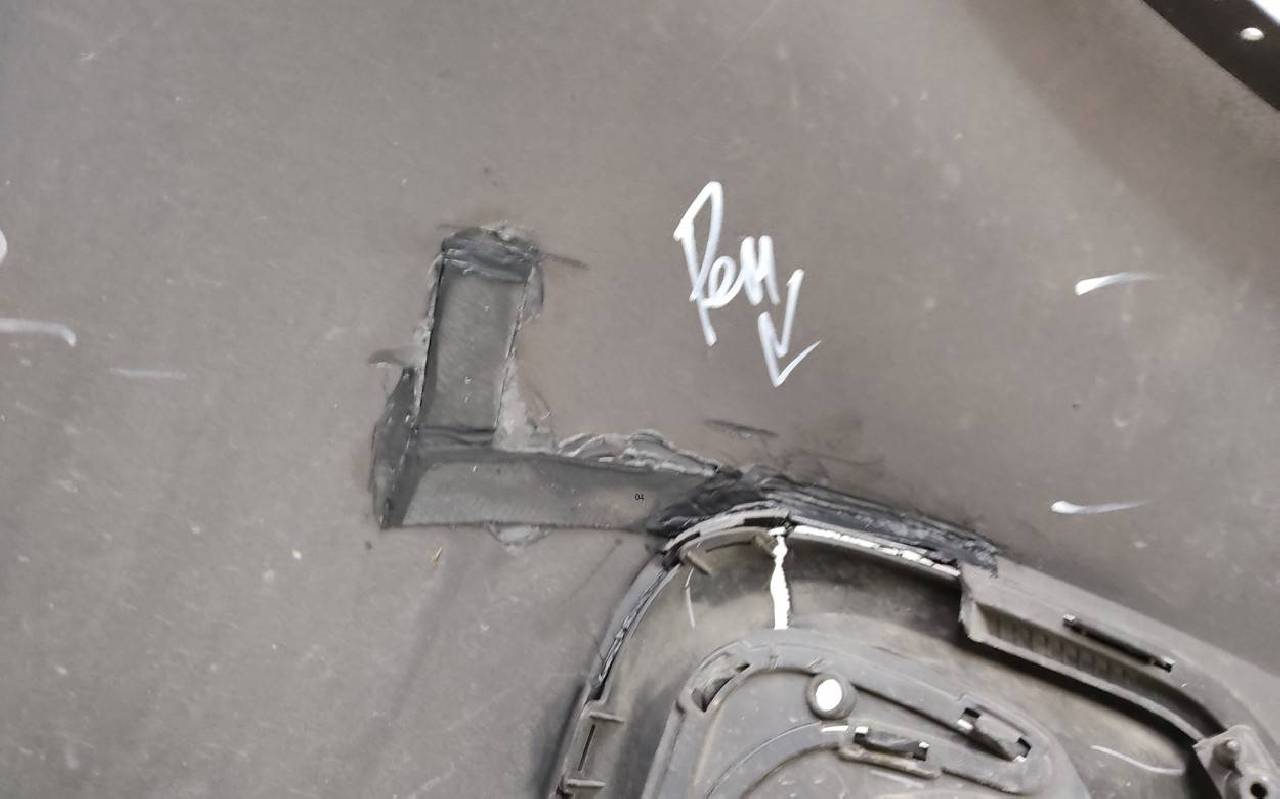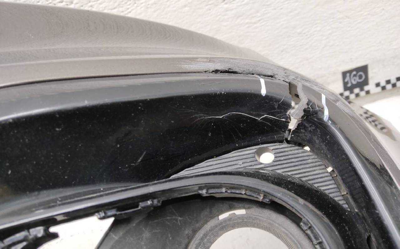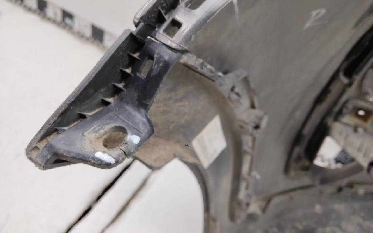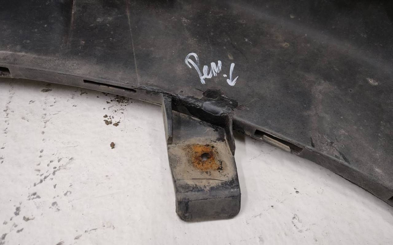 Состояние детали хорошее. Серо-коричневого цвета. После небольшого ремонта. Вмятина, царапины на юбке, рамки треснута. Дефект двух креплений на юбке. Под покраску