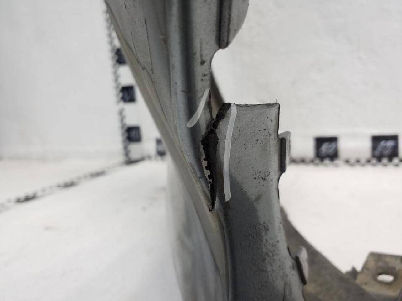 Состояние детали хорошее. Серебристого цвета, после ремонта, потертость поверхности, в сборе с юбкой.. Крепления целые, дефект пластика и крепления юбки.. Потребуется дополнительный ремонт
