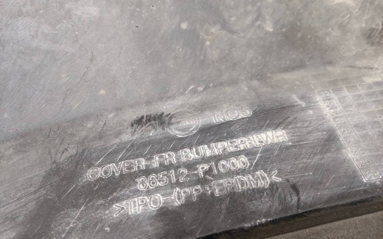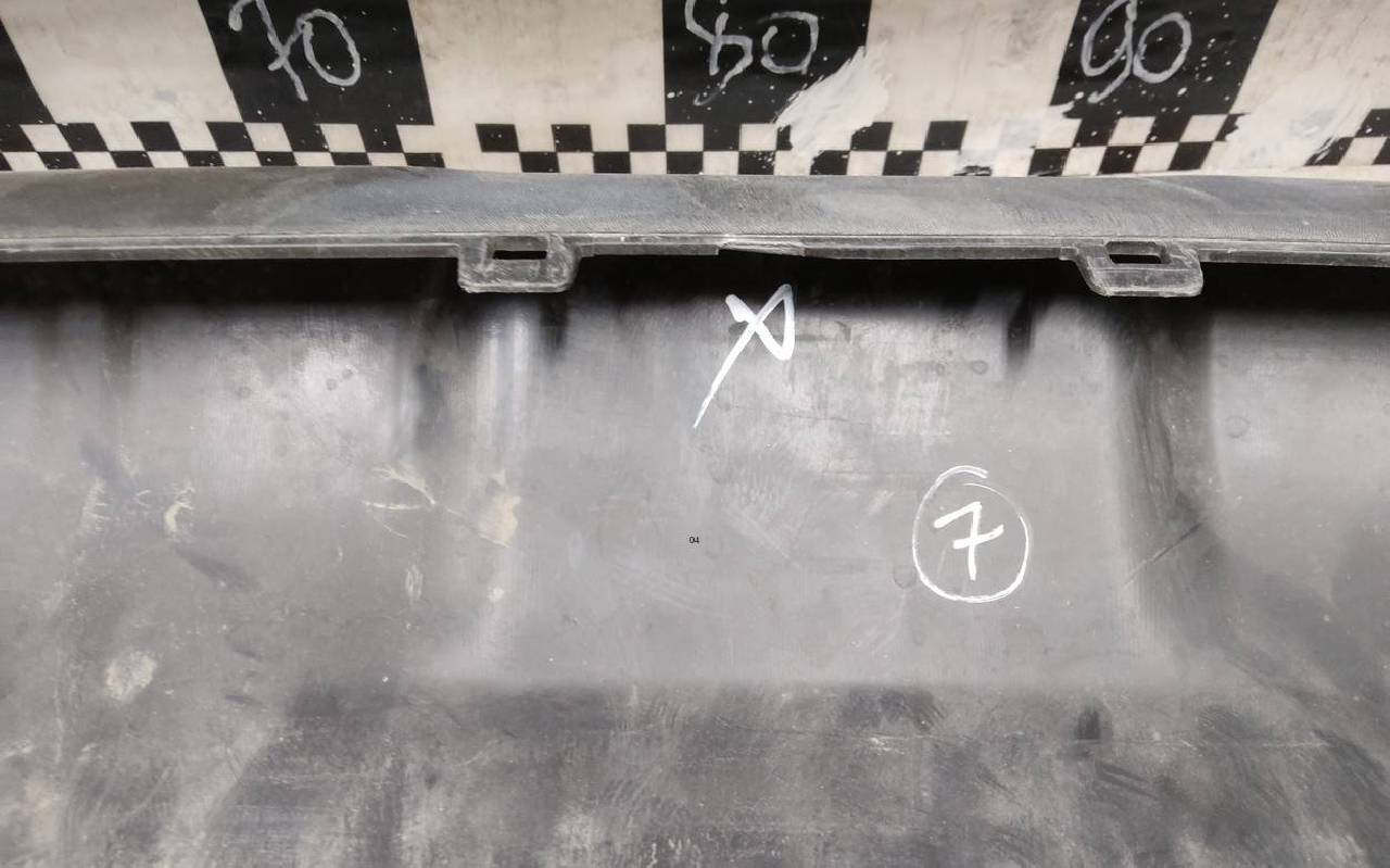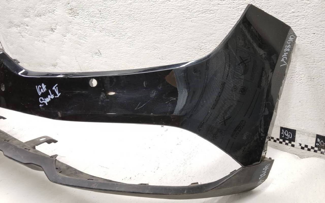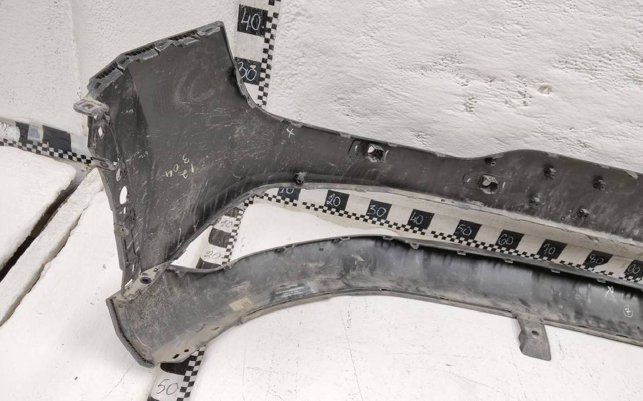 Состояние детали хорошее. Чёрного цвета под парктроники, трещинка. Царапины на юбке. Отсутствует по одному креплению на юбке и бампере. Потребуется незначительный ремонт