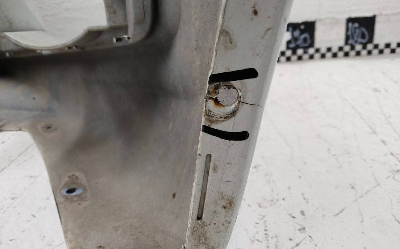 Состояние детали хорошее. Белого цвета, царапины. Дефект одного крепления. Потребуется незначительный ремонт