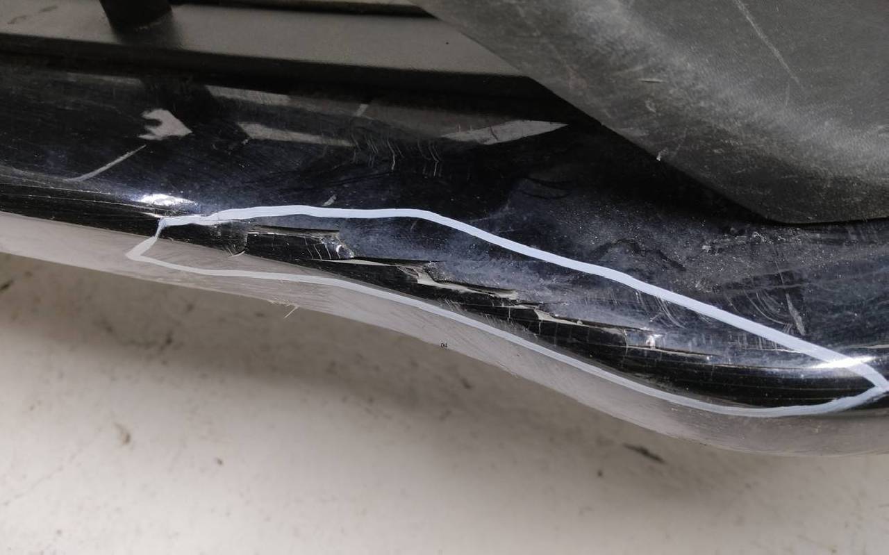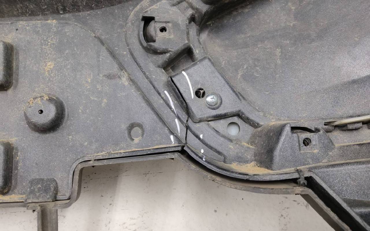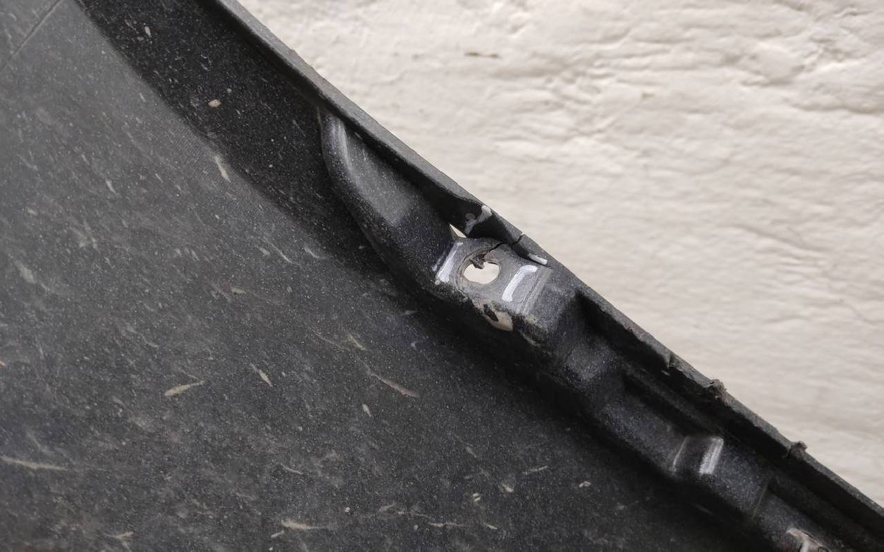 Состояние детали удовлетворительное. Чёрного цвета, небольшие трещины. Сломано три крепления. Потребуется ремонт