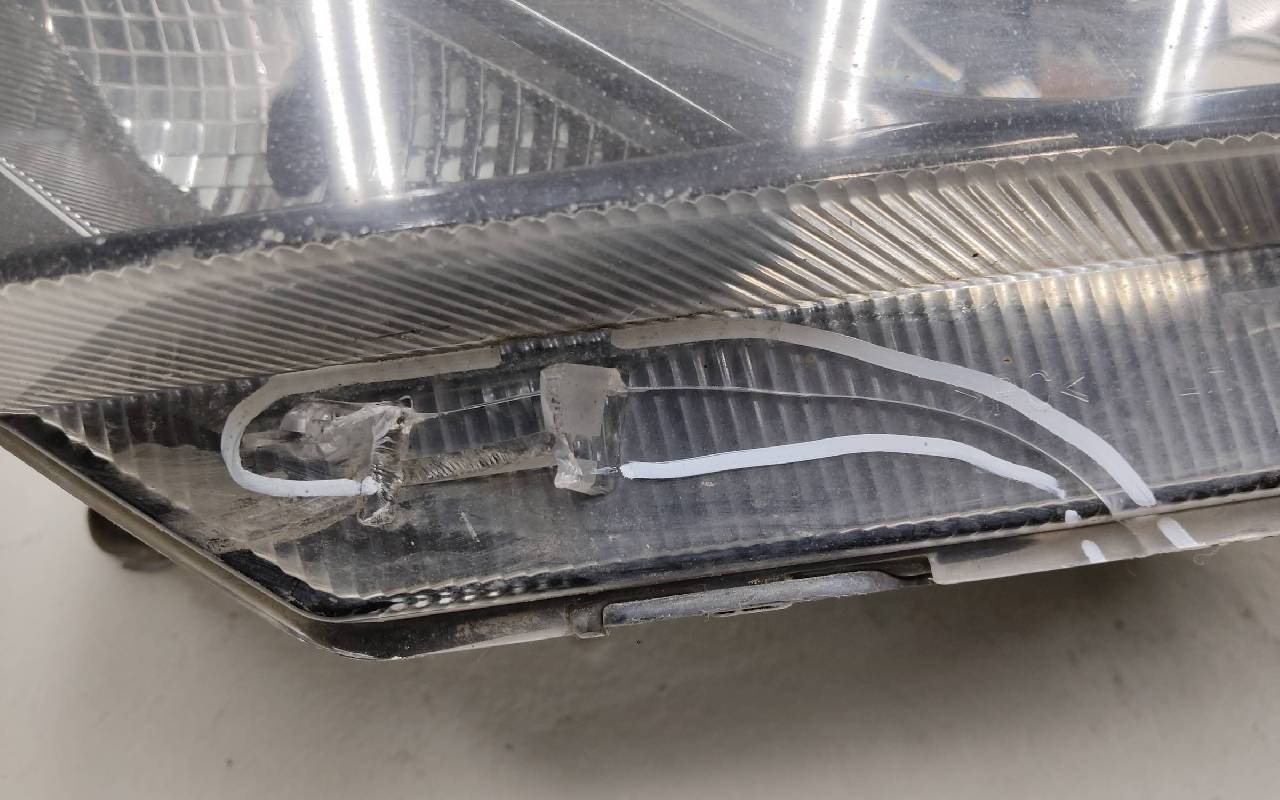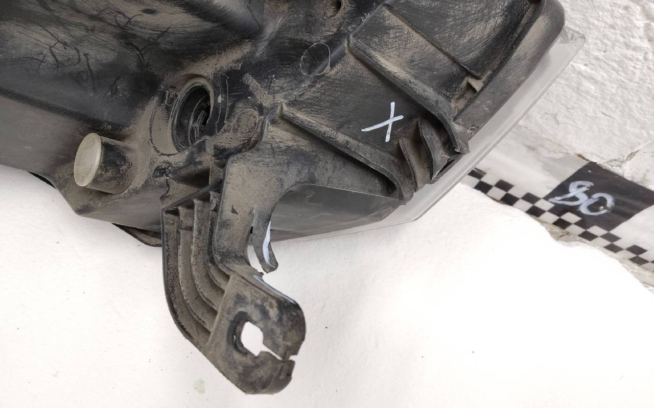 Состояние детали удовлетворительное. Трещина в нижней части стекла (под бампером), скол направляющей. Отсутствует одно крепление и корректор. Потребуется ремонт