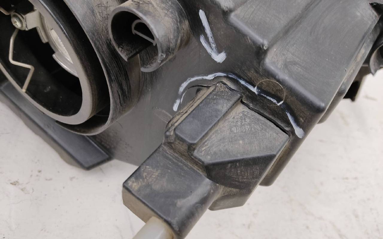 Состояние детали удовлетворительное. Потёртость стекла. Трещина, скол на корпусе. Отсутствует одно нижнее крепление, два верхних сломаны. Потребуется ремонт