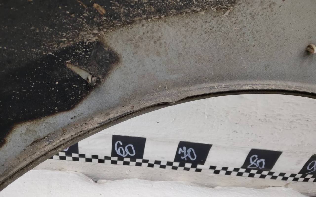 Состояние детали хорошее. Чёрного цвета, скол ЛКП. Накладка с потёртостями. Небольшая вмятина в передней части. Потребуется незначительный ремонт