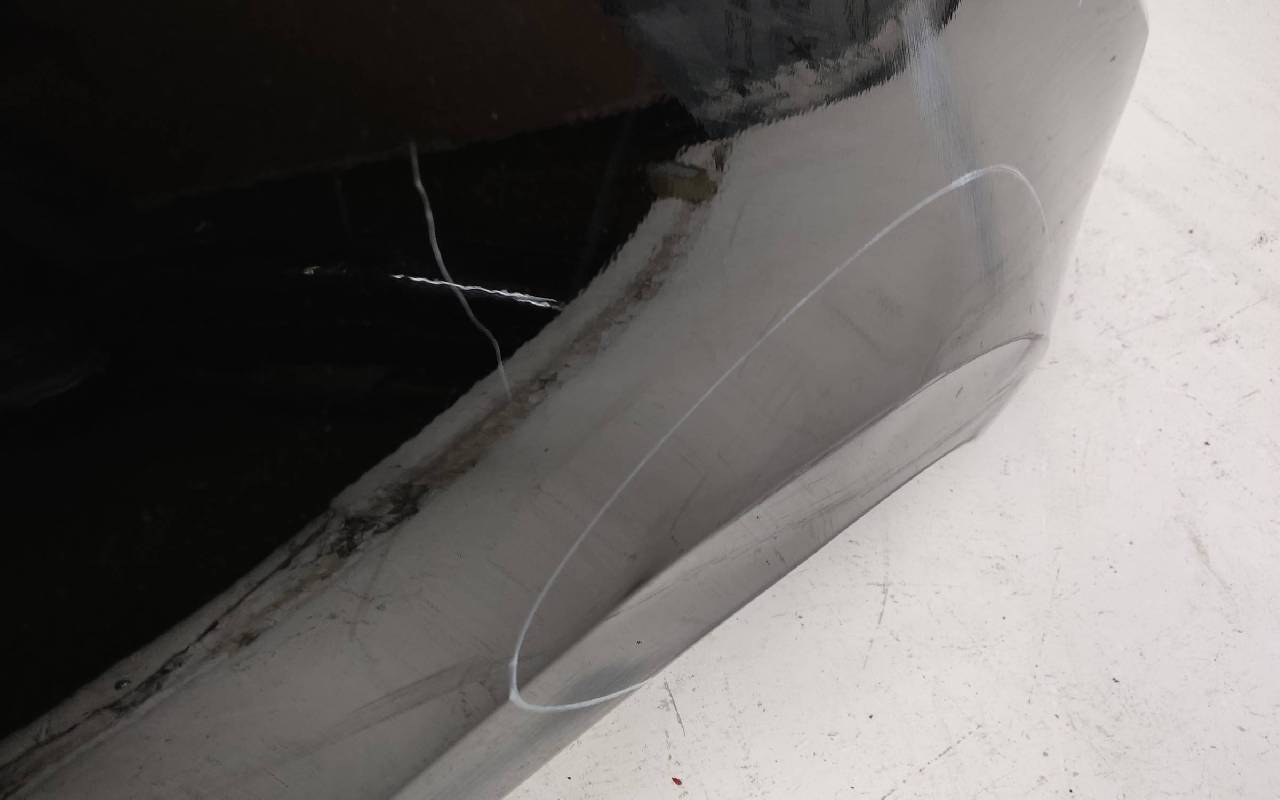 Состояние детали хорошее. Чёрного цвета, скол ЛКП. Вмятина. Потребуется незначительный ремонт