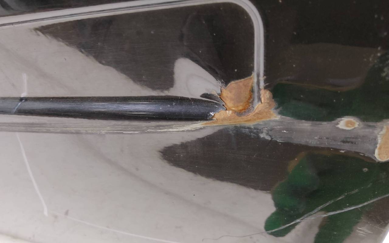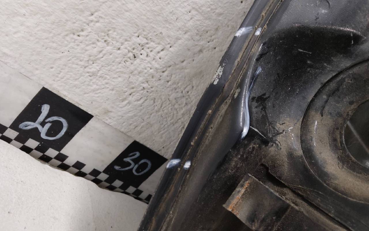 Состояние детали удовлетворительное. Чёрного цвета, скол ЛКП. Вмятины. Потребуется ремонт