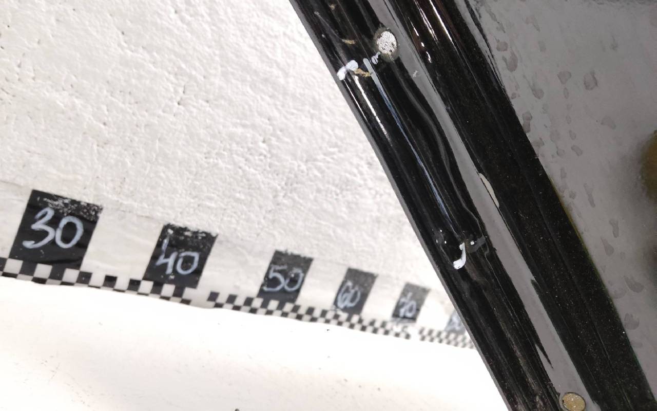 Состояние детали удовлетворительное. Чёрного цвета, скол ЛКП. Вмятины. Потребуется ремонт
