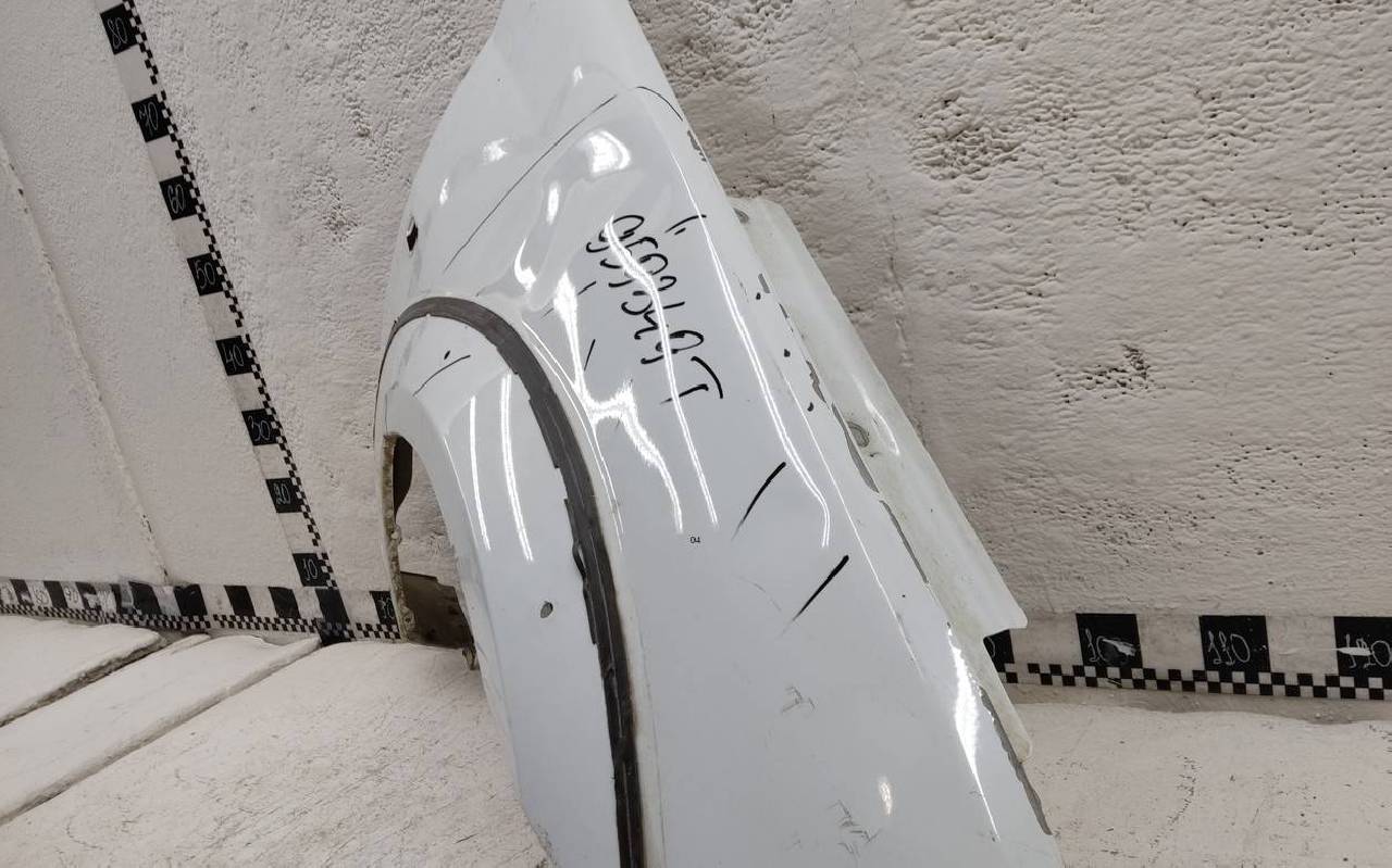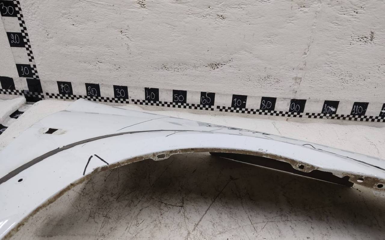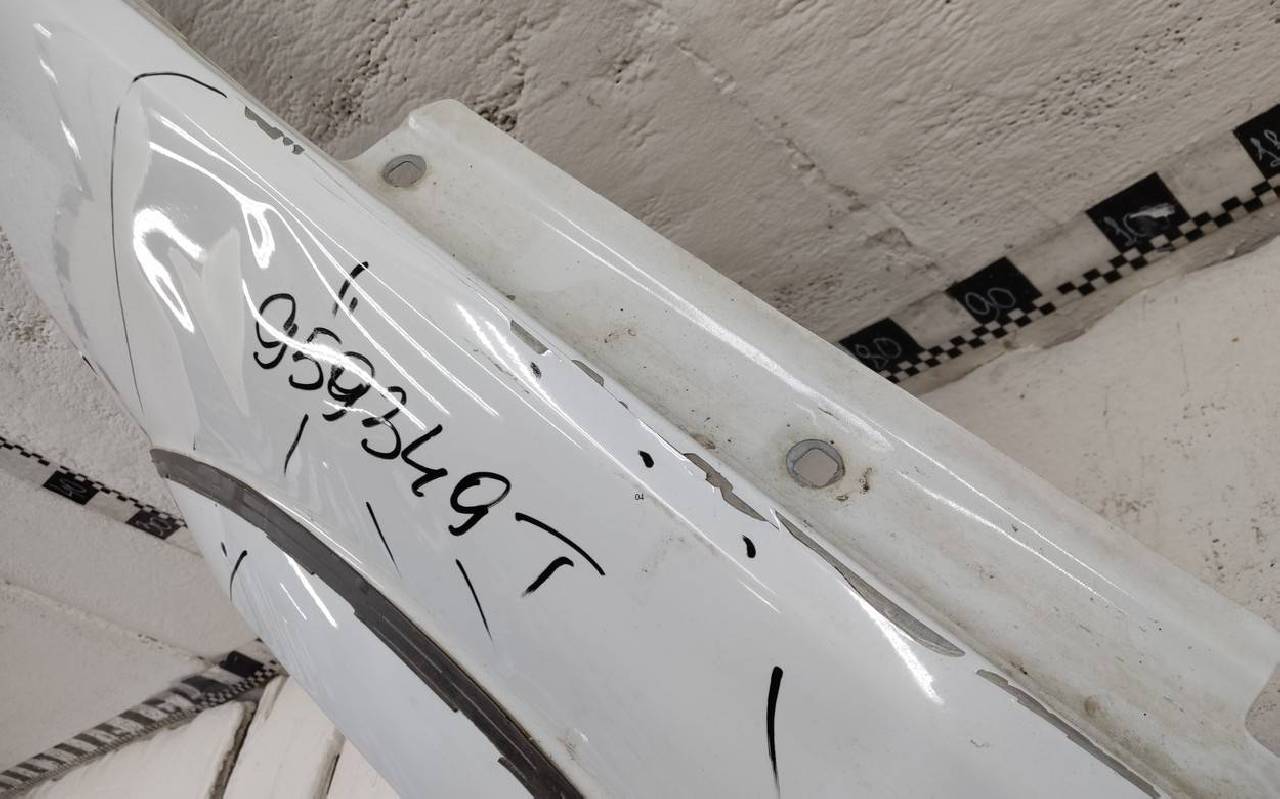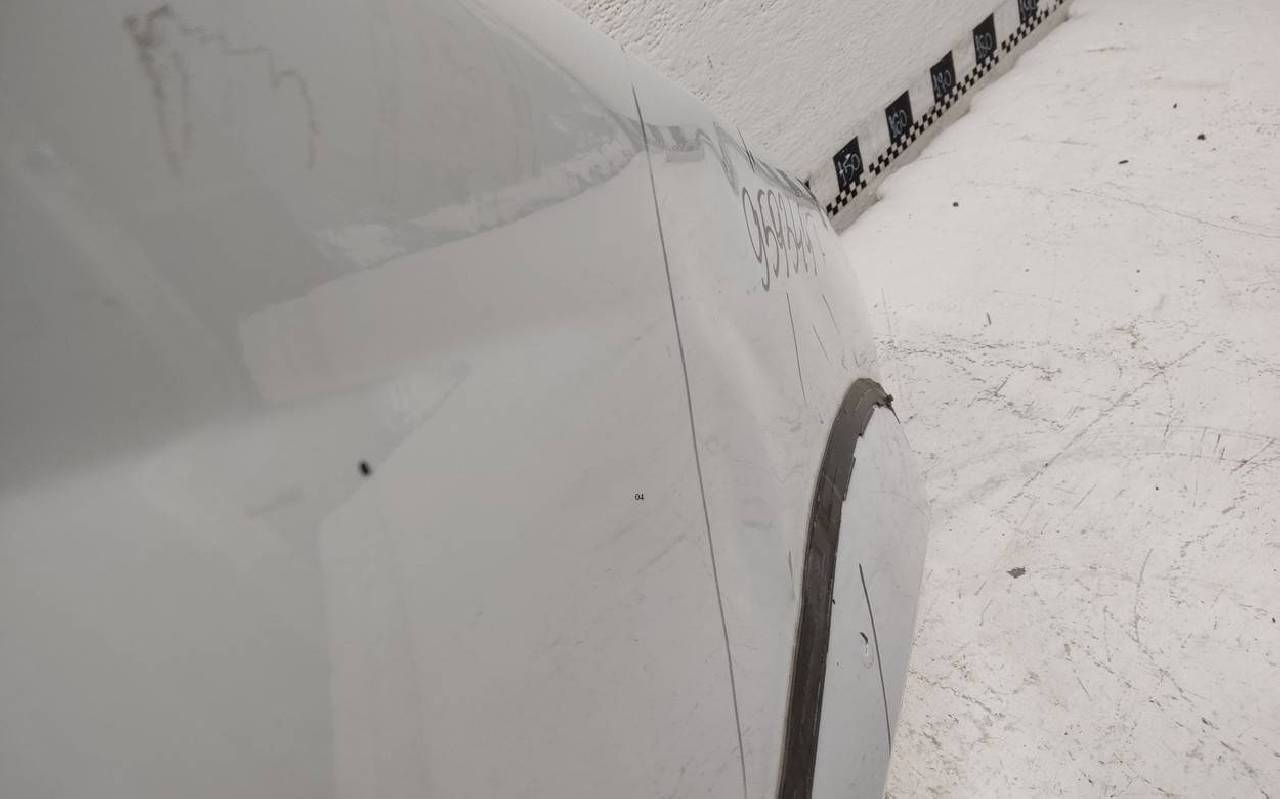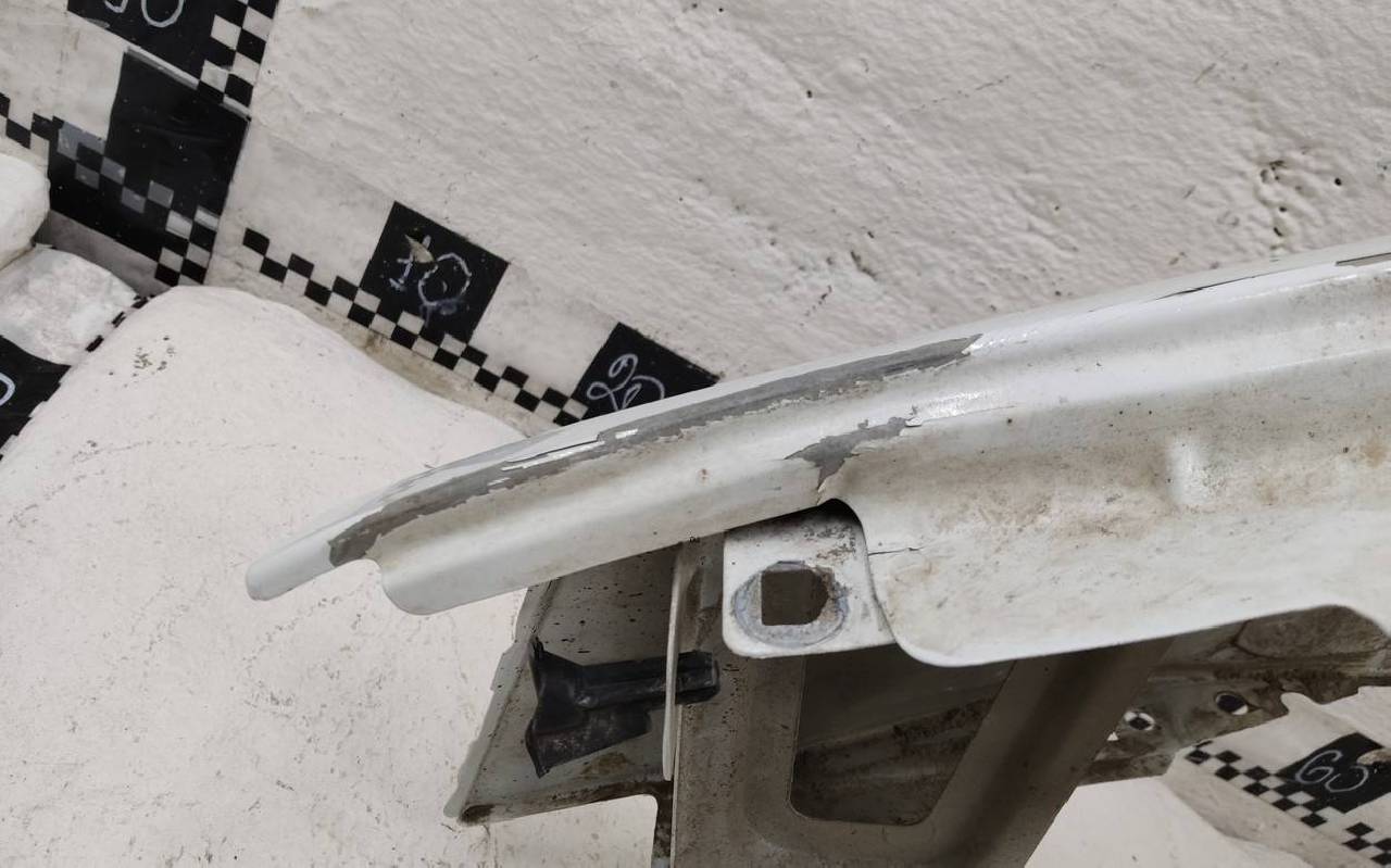 Состояние детали удовлетворительное. Белого цвета, скол ЛКП. Вмятины. Потребуется ремонт